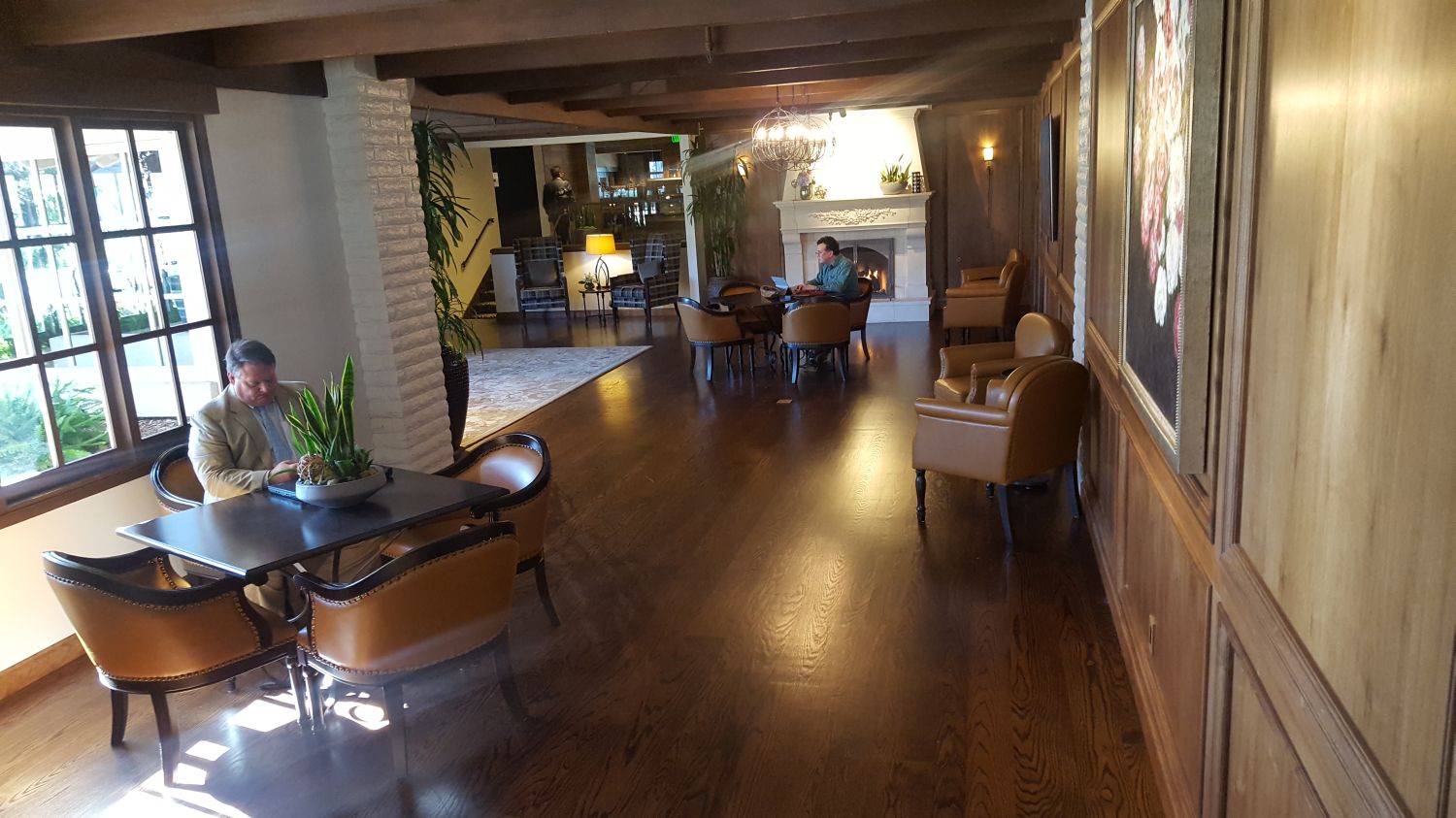 That was the end of the caravan tour. We returned back to the starting point just before the Safari Park closed, and I called another Lyft ride to take me back to the place where I was staying. Here's a few bonus pictures of the Rancho Bernardo inn and conference center from a few days later, when the weather was much better and back to its typical SoCal self. Rancho Bernardo was built in the style of an Italian villa, with lots of low buildings constructed around central green courtyards. There was also a clear influence of Spanish colonial elements of architectural design, with shaded open walkways running from building to building and a central plaza in one spot. It was clear from the way that the inn was designed that it didn't have much cold weather or rain throughout the year, and that first day had been a true outlier. Of course, I didn't have much time to spend wandering around the inn or using the spa facilities, all of which would have cost an arm and a leg anyway. Most of my time on this work trip was spent here: