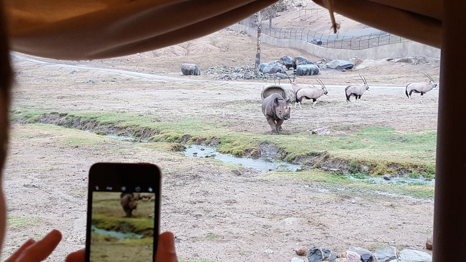 There was already a rhinoceros laying on the ground in the back corner of that building. This was apparently the oldest rhino in the Safari Park and likely the oldest one anywhere in the world, topping out at almost 50 years old. Rhinos normally only live to be about 30 in the wild and this particular male rhino had been used in a series of breeding programs with dozens of offspring. Something like 10% of all rhinos in captivity in the world were descendants of this guy. He was quietly resting under the overhang and didn't seem interested in moving.
