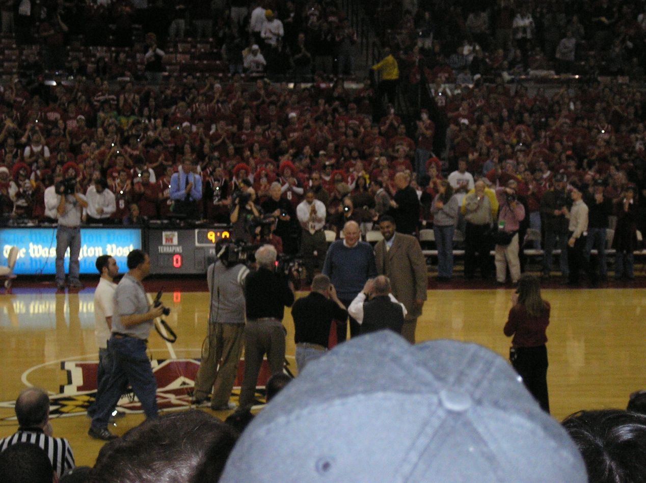 This game was taking place in the Comcast Center (now the Xfinity Center), a large arena built on the edge of campus that became the home for the Maryland basketball teams at the start of the 2002-2003 season. Prior to that, Maryland had played for decades in Cole Field House, an aging building located in the center of the campus that also served as a multipurpose building. I actually had a class that took place in Cole Field House my first semester, up in a small classroom on the third floor. It was an old building that lacked modern comforts and it would get incredibly hot when games took place, to the point where the basketball coaches on each side would be sweating through their suits and looking really grimy by the time that the game ended. I loved that building and I've never really warmed to its replacement. The names alone tell the story: Cole Field House was named after William Cole, a Maryland judge who served in Congress and was one of the university's regents. The Comcast/Xfinity Center was named after the company that gave the university the most money for the naming rights. The new arena has always had a bit of a souless corporate feel to it, and I've always wished that the basketball team would have continued playing one game a year back in Cole Field House. But of course that would have meant less money from ticket sales, and if there's one thing that I learned from a dozen years at the University of Maryland, it's that making money from corporate sponsorships is always priority #1. That's not even a possibility any more since Cole Field House was torn down and replaced with an indoor practice facility for the football team in 2015, a decision that still angers me to this day. Was it really necessary to get rid of a beloved piece of the university's history to have a practice facility for our crummy football team?!
