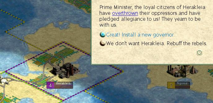 More positive news and the most interesting thing in some time occurred in 1500AD when Herkaleia flipped back to me. After centuries of foreign oppression, the Greek citizens were reunited with their comrades. Hooray!