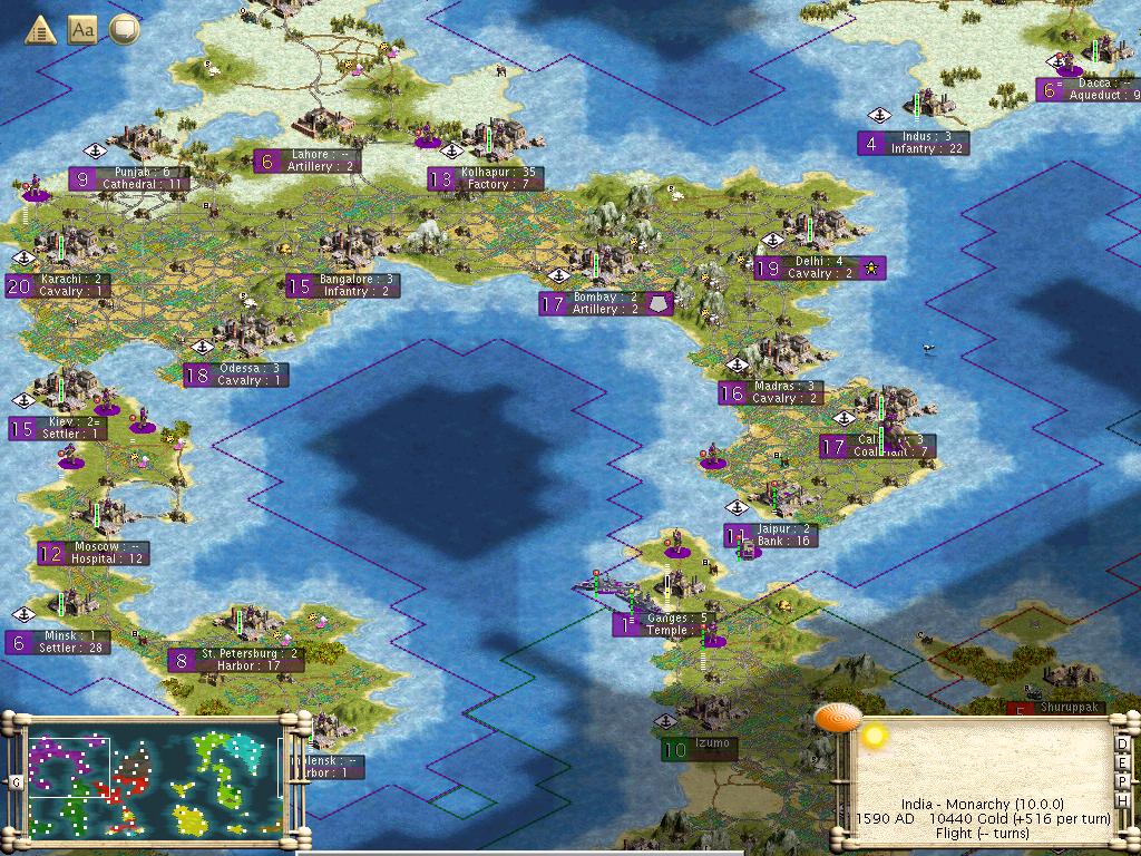 This was a map of the world in 1590AD, after I had destroyed the first Japanese city and replaced it with one of my own: