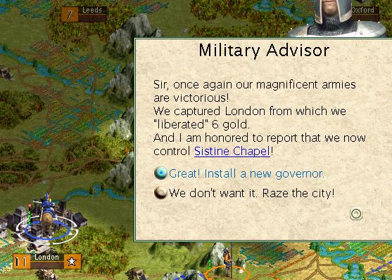I blitzed through England almost faster than I though possible, using workers to build roads and speed my path wherever needed. I also got my fair share of leaders in this war (of course):