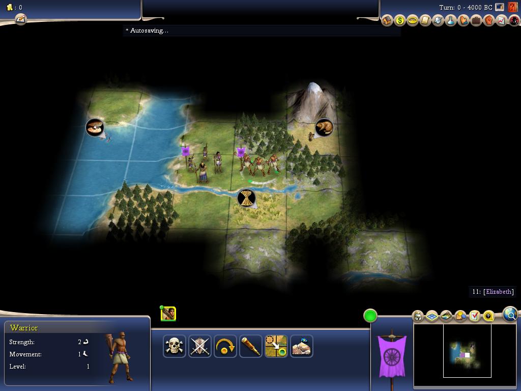 It may have been missed in all the text posted above, but we were essentially building a settler in 6 turns while also growing to size 2 and training a second warrior! Of course, that's because we were landing 80 free shields from four forest chops. And all that while waiting for Animal Husbandry research to come in so that we could hook up our second food bonus, no less. The ability to grow working food bonuses, and then swap to settler for one turn as the forest chops come in, has to be one of the best micro tricks you can pull in the early game. It lets you get around one of the fundamental tradeoffs in the game, the inability to grow cities and build workers/settlers at the same time. Love those Fast Worker lumberjacks!
