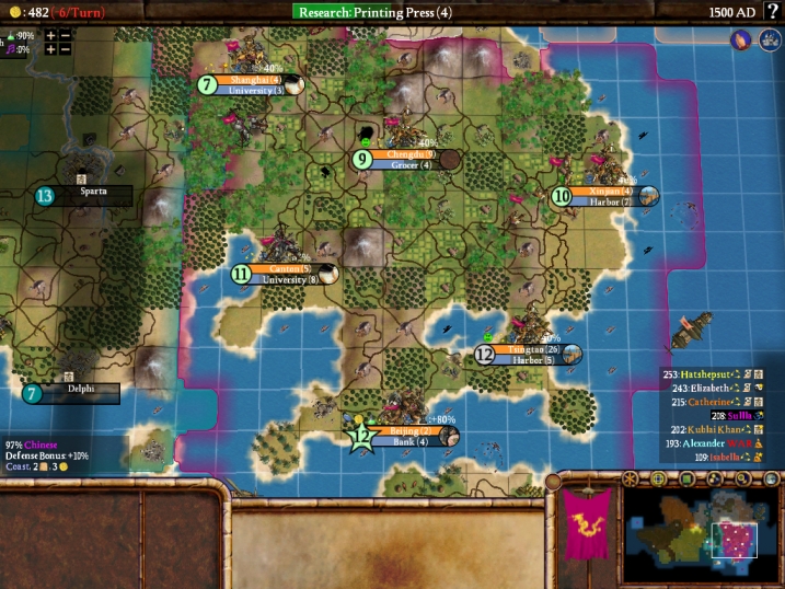 I would spend the following six months totally absorbed with Civ4, with the game on my mind practically every minute of every day. I was 22 years old and just finishing up with my first year of graduate schooling, not knowing at the time just how many more years would be required before completing my history Ph.D. Once the semester ended in May, I had a completely empty slate for the entirety of the summer before classes began again in the fall, and I was more than happy to fill up that time playing the pre-release test versions of Civ4. I was living in a tiny studio apartment by myself, I didn't have a girlfriend, and all of my fellow grad students had gone home for the summer to leave me alone on a deserted campus. What else was I going to do with my time?