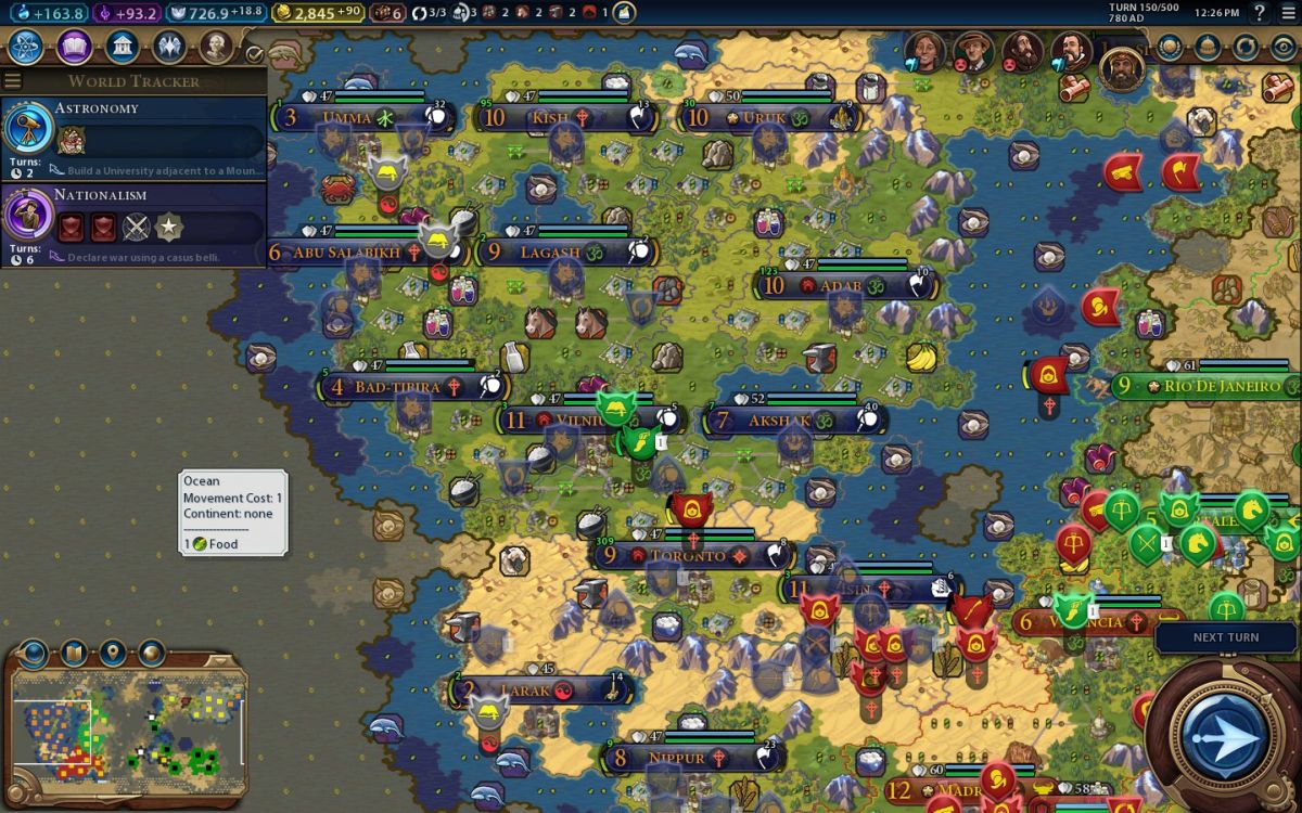 I knew that there would be diplomatic repercussions for attacking Hattusa, I simply hadn't expected them to be so ludicrously overblown. Nevertheless, it was still the right decision to remove the city state from the playing field. I could not have Pedro gaining so much science for free on his Campus districts for the rest of the game. Taking out Hattusa needed to be done if I were going to slow down the AI leaders enough for me to reach space first. However, the diplomatic fallout would make things significantly more dangerous going forward. I could no longer count on my neighbors remaining peaceful as I advanced into the later stages of the gameplay.