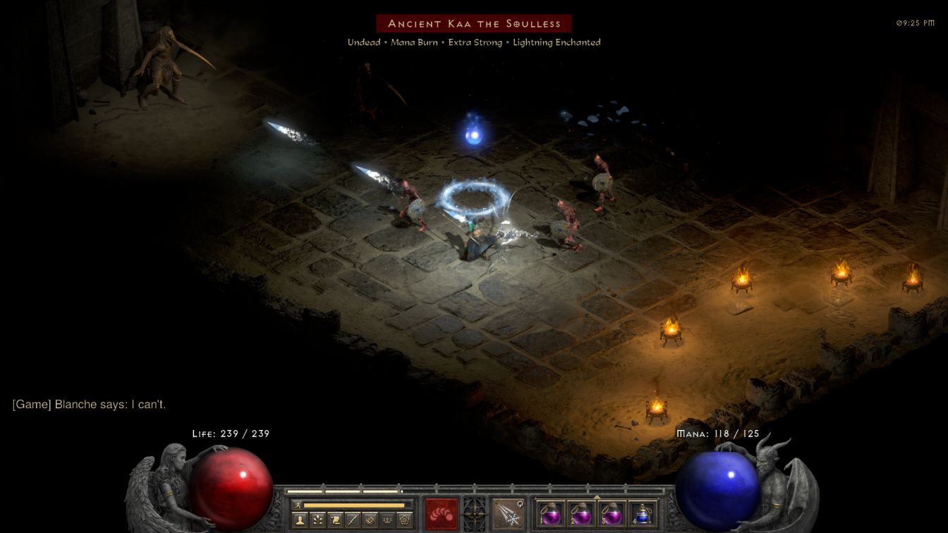 That was way too close and a sign not to take these areas too lightly even if it was Normal difficulty. Blanche's biggest weakness was the fact that Ice Bolt could only hit a single target at a time, with absolutely no area of effect damage whatsoever. She was easily overwhelmed by numbers and the Burning Dead skeletons always appeared in big groups.