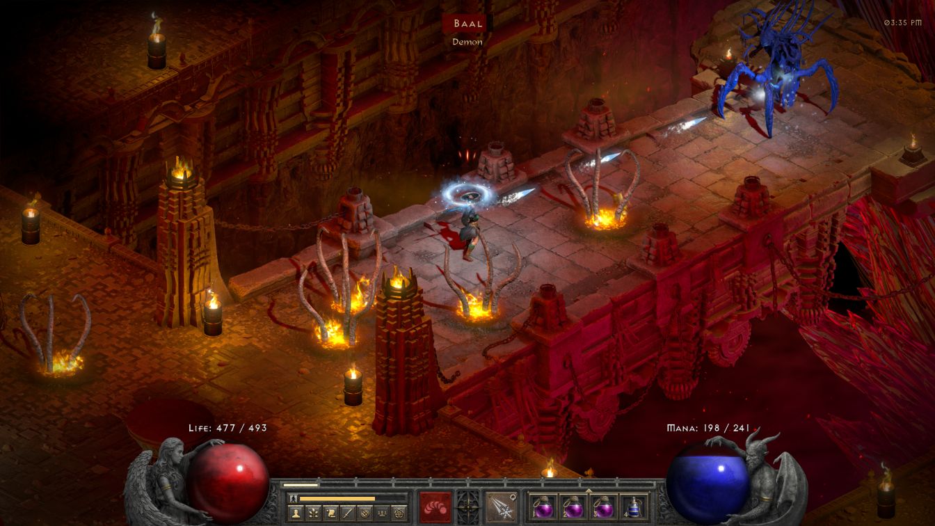 I've never liked Baal as a final ending boss and this was another occasion where he failed to deliver a real fight. The Lord of Destruction is basically a coward and rarely engages in direct combat with the player; Blanche found him hiding out on the platform in the center of the Worldstone chamber. I started tossing Ice Bolts from the opposite side of the screen near the base of the bridge and Baal seemed content to stay in place, summoning his Festering Appendages and throwing out his Cold Wave but otherwise doing nothing. He also tried to use his infamous Orange shot but wasn't close enough to hit Blanche so all those fireworks did absolutely nothing. And... that was the whole fight. Baal never moved away from that spot, summoning his clone when he dropped low on health but never moving or teleporting away. I drank red and blue potions as needed and otherwise held down the right mouse button for about 90 seconds casting an unending stream of Ice Bolts. Baal died like a total putz and achieved nothing: