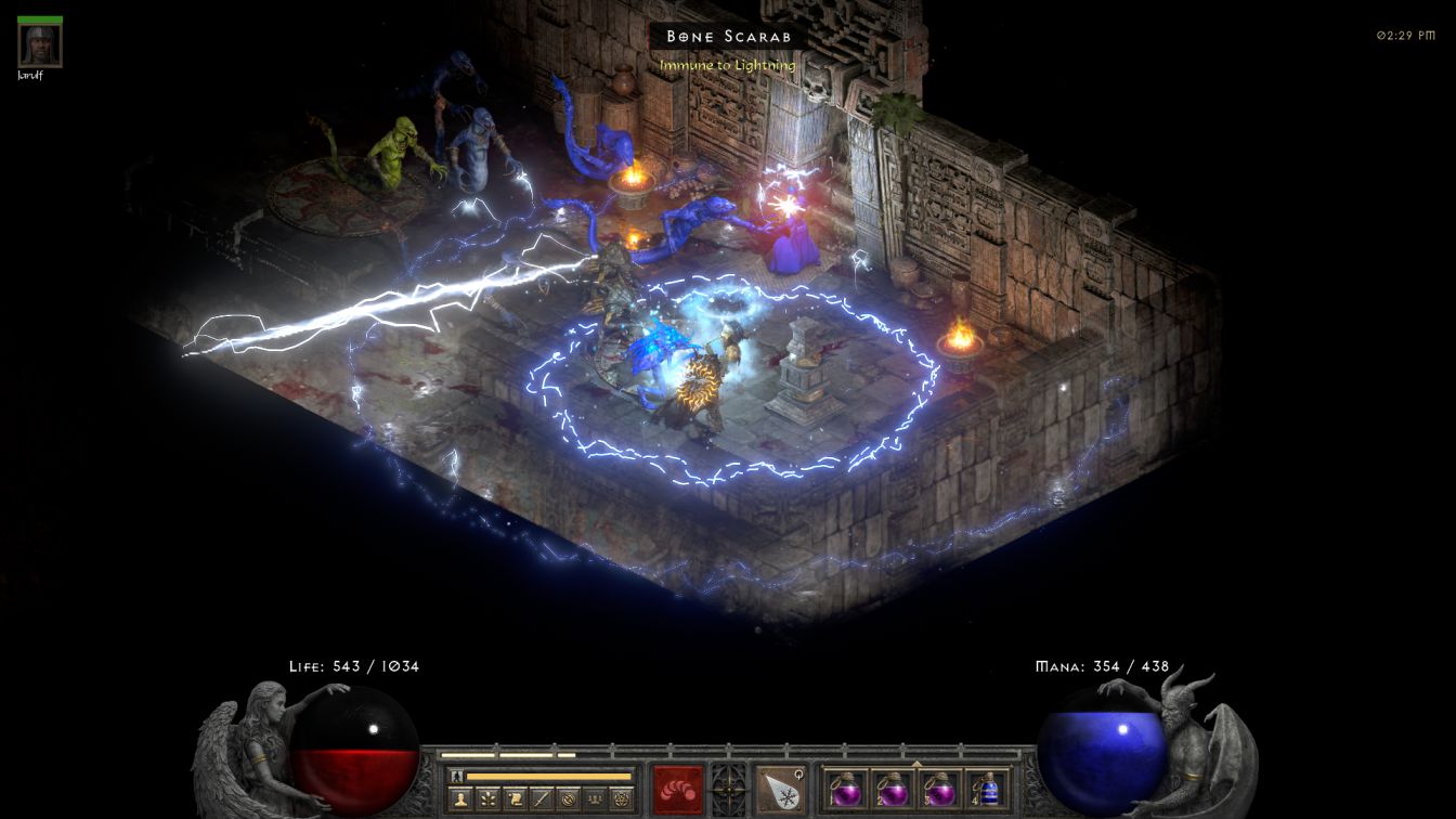 The next goal was securing Blanche's progress forward which required full clearing Lower Kurast and discovering the waypoint. This proved to be an almost laughably easy task, with the first part of Kurast containing leapers, vultures, and Zakarumite zealots. None of them were Cold Immune, none of them had dangerous AI routines, and all of them were low health opponents. The leapers in particular only had 3300 HP and zero cold resistance which meant that they always died in a single Ice Blast, heh. The other two enemies were only barely more sturdy, dying in two shots instead of one, and even the bosses and champions couldn't last more than a few seconds. It's rare to find an area quite this easy in Hell difficulty and I enjoyed this brief respite for Blanche.