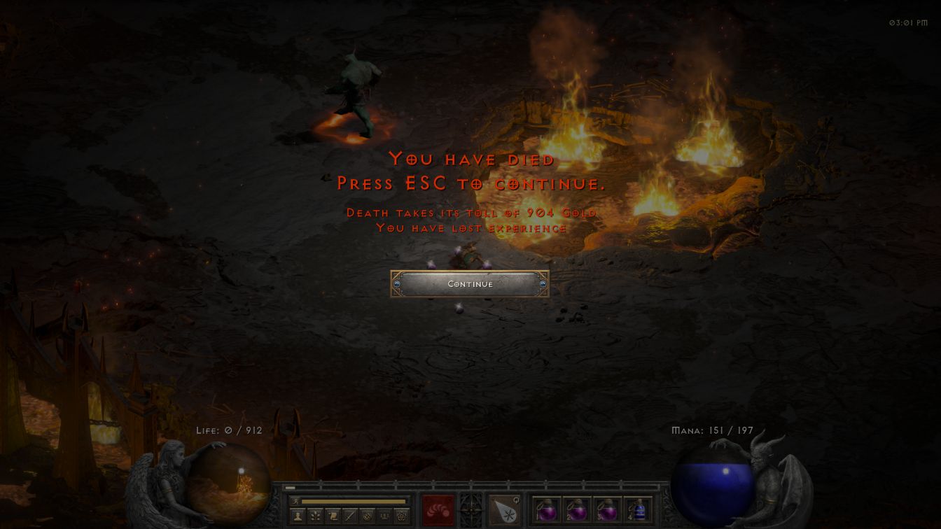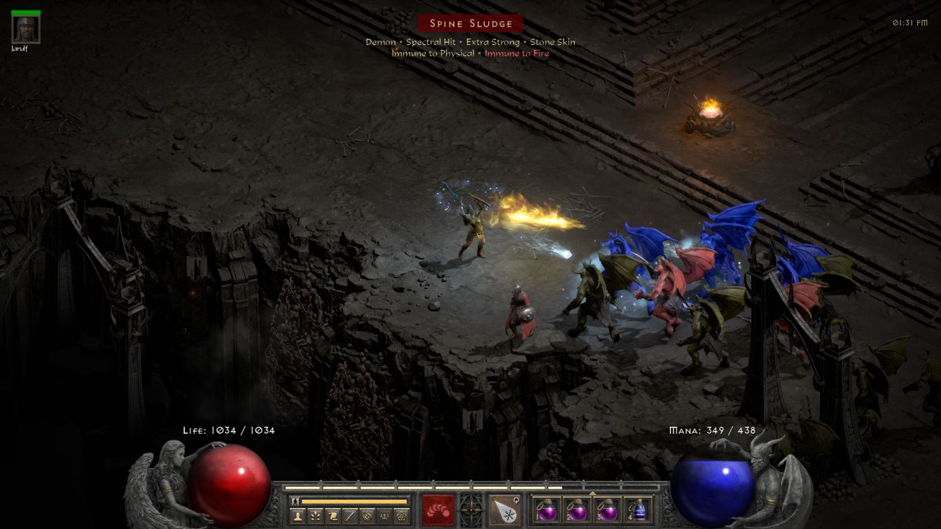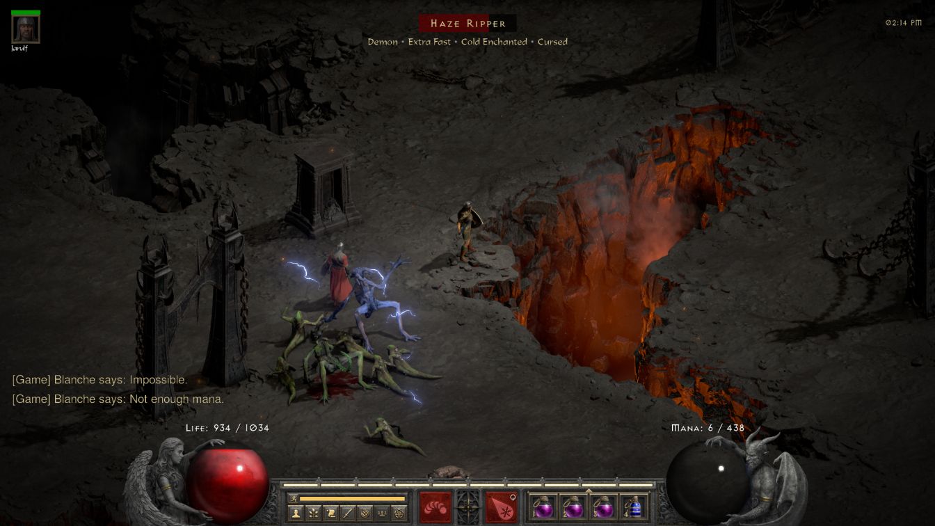 I had enough time available to continue onwards into the River of Flame, one of my favorite parts of Diablo 2 from a visual perspective. Blanche found Urdars and Blood Maggots inhabitant the River right out of the gate, which was slightly annoying due to all of the little bugs that those maggots would breed. That left only the third enemy type: