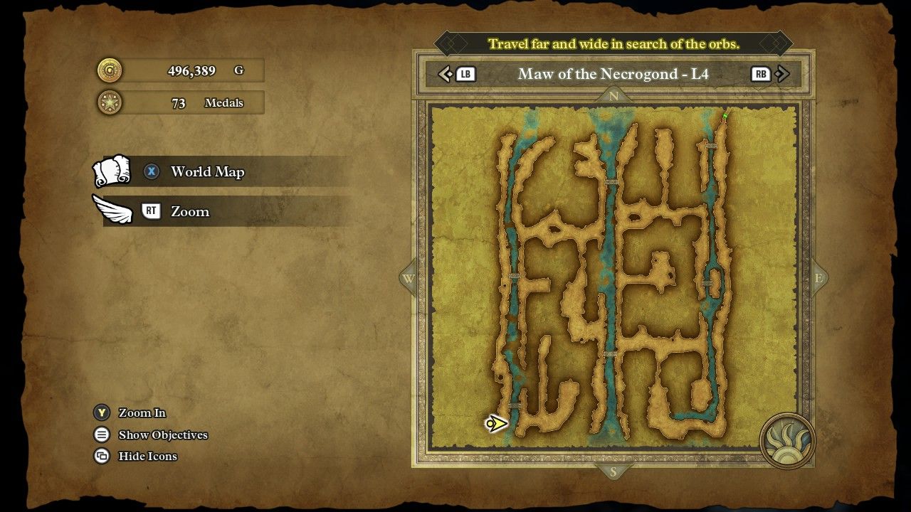 At the other end of the dungeon was a tiny shrine that contained the Silver Orb. That brought Erdrick's tally to five of the six needed, with the final orb not requiring any dungeon-grinding or combat at all. Instead, she merely needed to return back to Shantyburg:
