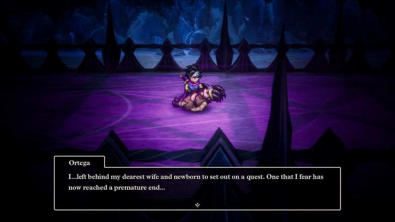 This same event did take place in the NES game as well, though there wasn't any dialogue back then as Ortega simply loses a combat against the hydra and then disappears. The HD-2D remake really leans into the sad story of Ortega and executes it quite well as far as I'm concerned.