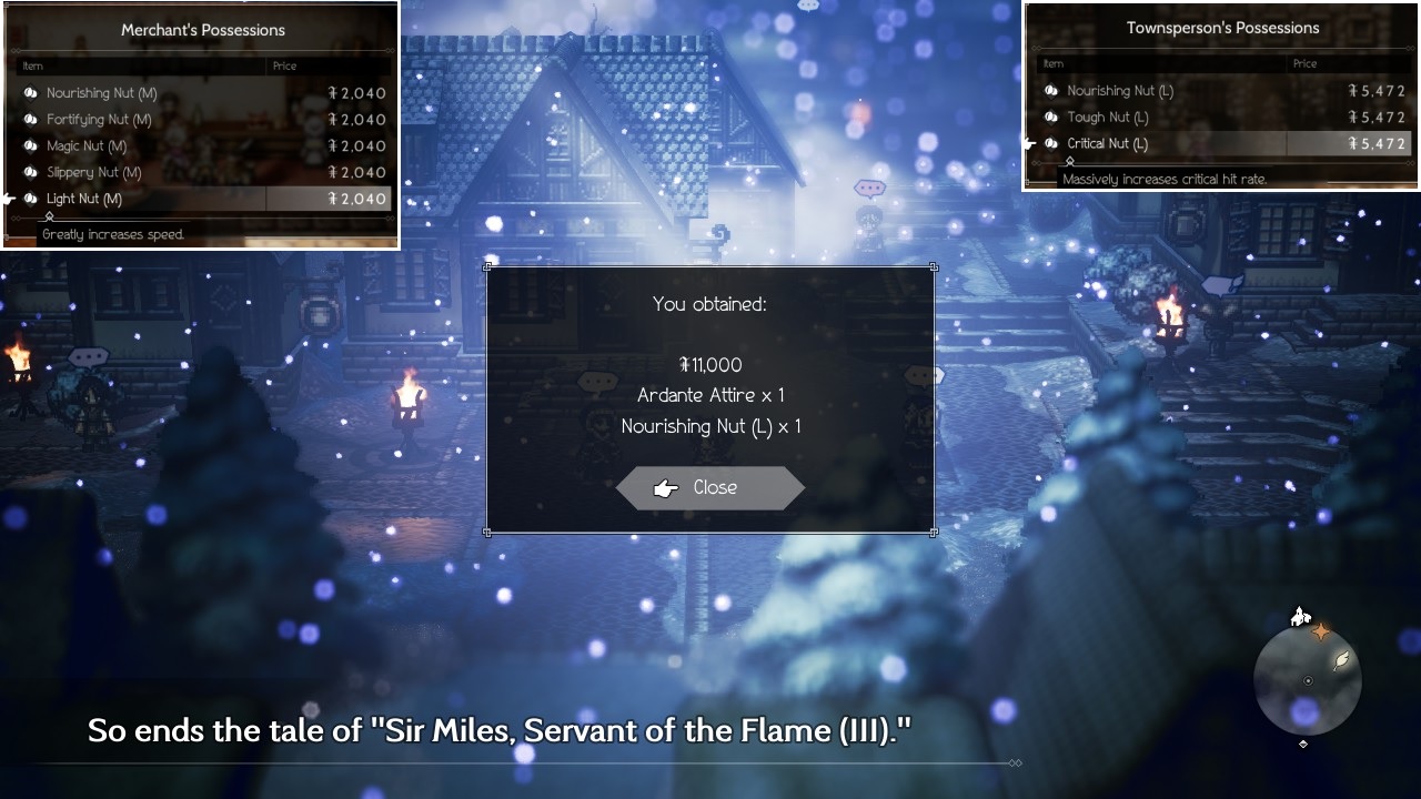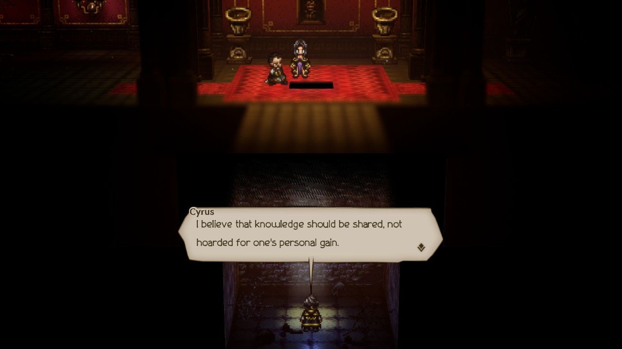 If you ever needed more proof as to why the solo characters need to make use of all four types of Path Actions, look no further. Most of the nuts are acquired through side quests or Steal/Purchase actions that someone like Cyrus wouldn't be able to unlock on his own. If he could only make use of Scrutinize and nothing else, this journey would have gone from very difficult to completely impossible.