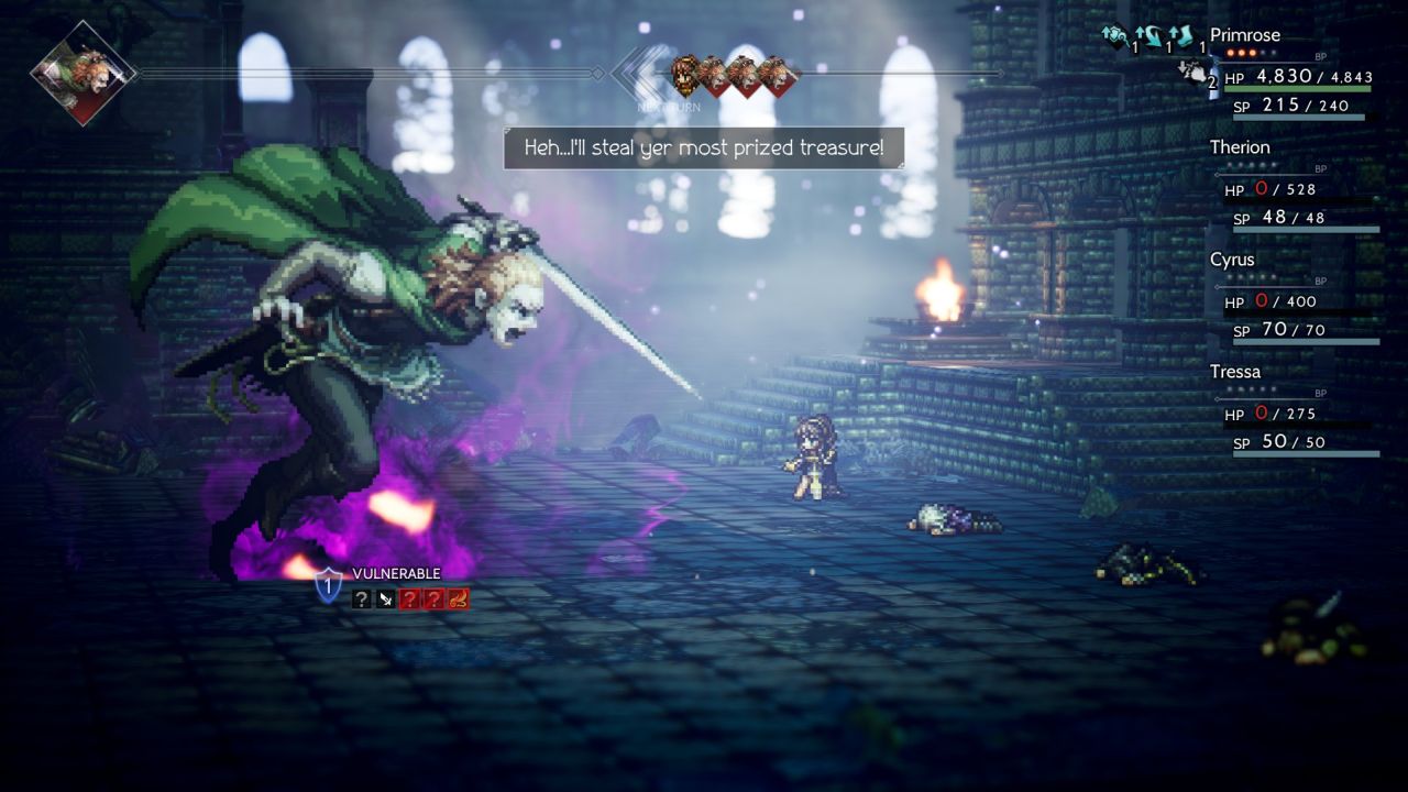 Esmeralda and Darius had been the biggest obstacles for Primrose and things were about to get a lot easier against the remaining Chapter 4 bosses. I wrapped up Cyrus' adventure next in the Ruins of Eld: