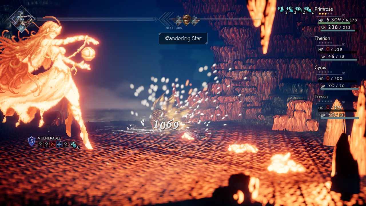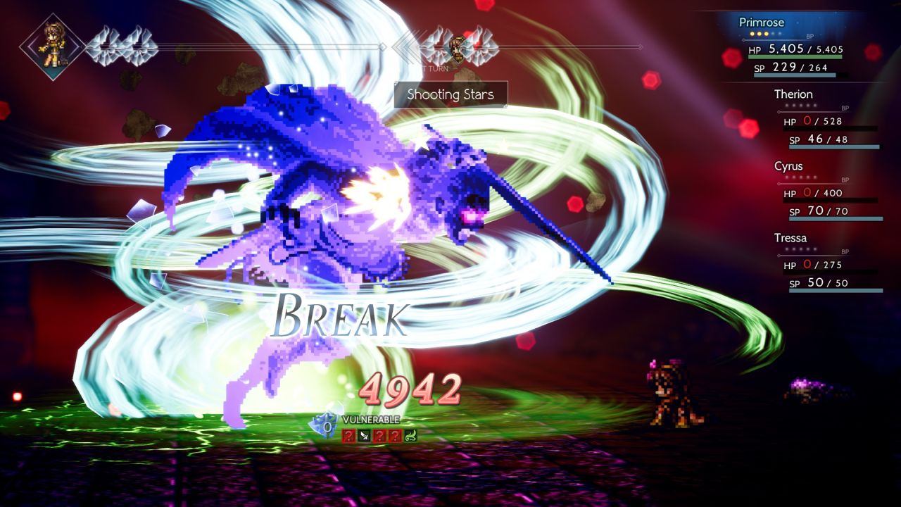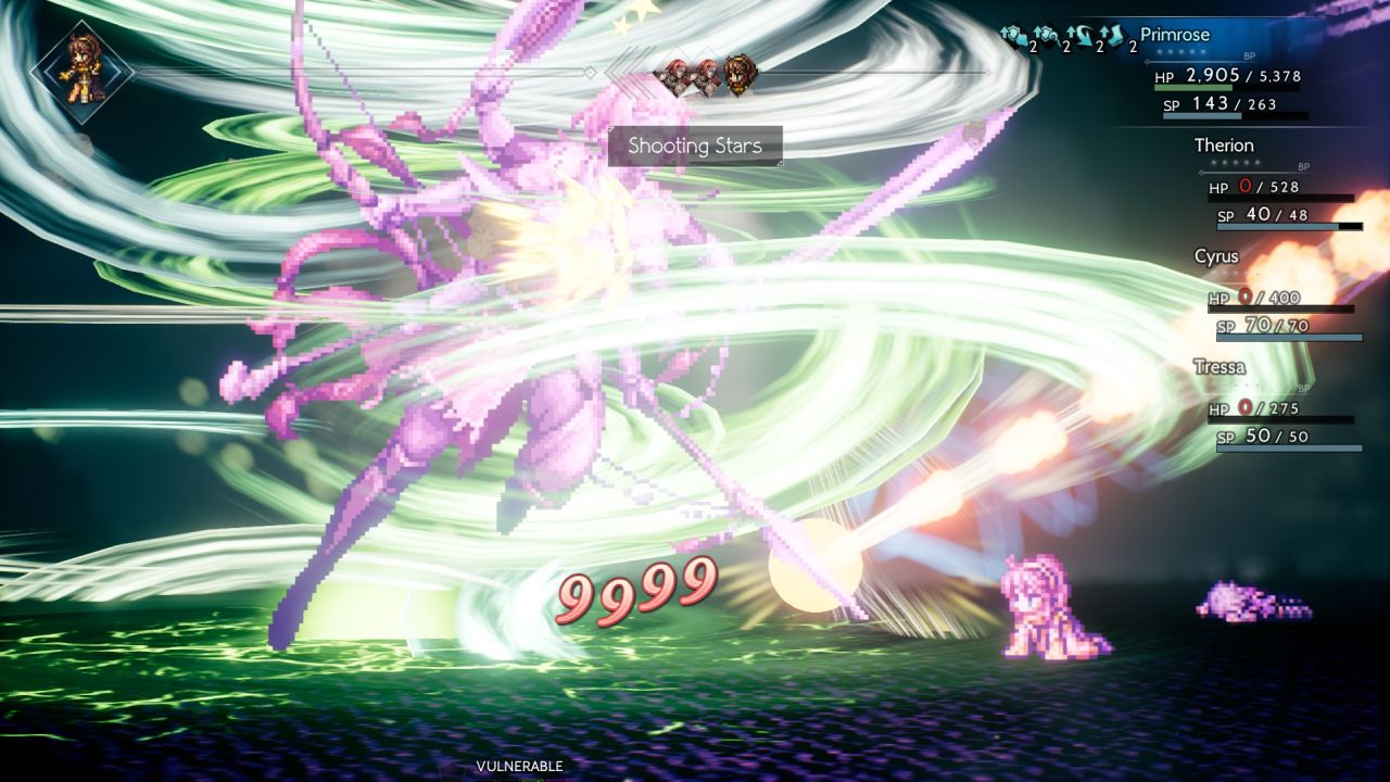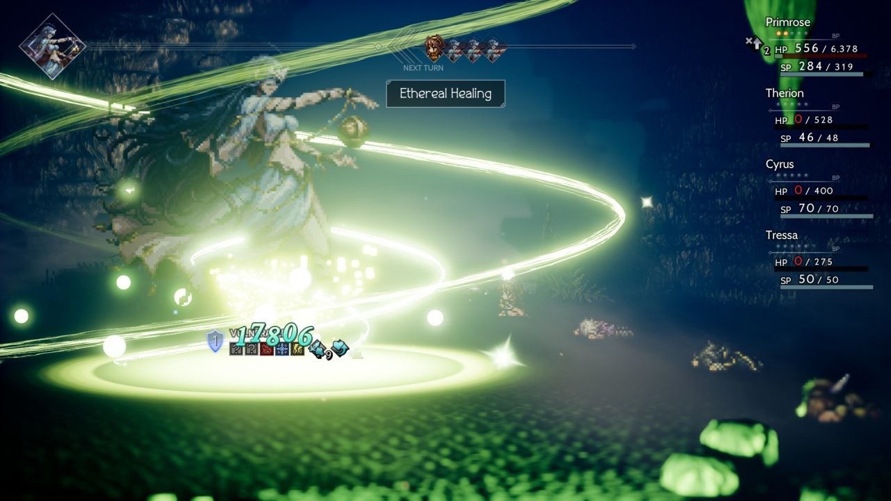 I had played through all of the various stories that make up the main gameplay of Octopath Traveler, and that experience had convinced me that the Starseer class was capable of facing off against some of the endgame optional superbosses. Going into this variant I thought that the Starseer would be pretty strong, but I had still been surprised at its ability to nullify nearly all of the damage dealt by most opponents. Again and again, Starseer Primrose simply did not take damage from the various Chapter 4 bosses. I had to know whether that would continue against Octopath Traveler's remaining challenges. Just how far would she be able to push things despite having a rather paltry offensive output? We were about to find out how far the game's best defensive and support skills could take her.