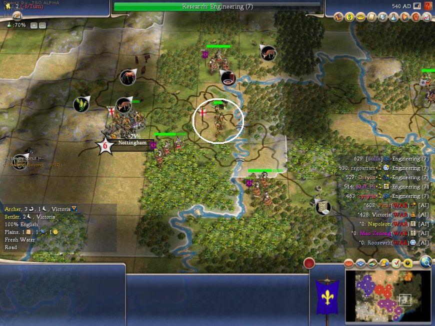 Oh, and the AI is still off chasing religions instead of researching the military techs needed to save itself. I tell you, sometimes this AI is a flat-out idiot. I think it handles things tactically rather well, but the strategic level still needs work. Why the AIs never researched Feudalism in this game is a head-scratcher.