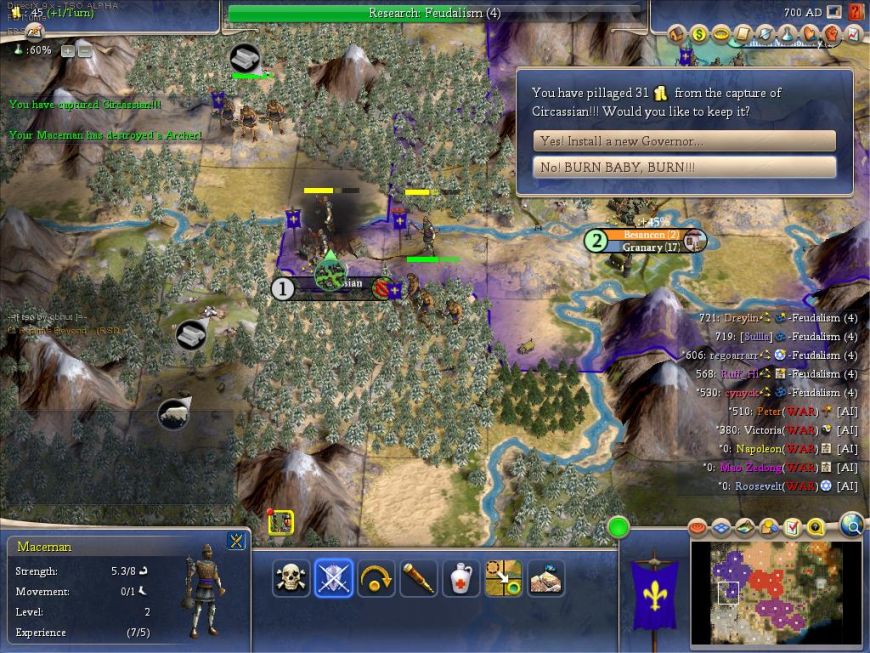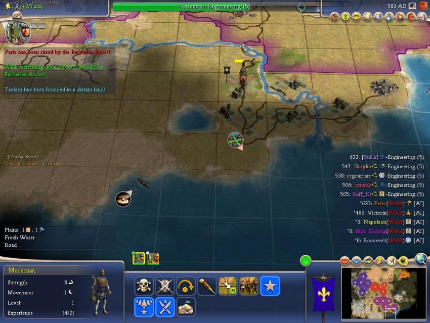 Whoops. It hardly mattered at this point, but losing a former capital to the barbs? Weed alert! By the way, I had a brief moment of terror before realizing that Paris was founded by the "other" France and my capital city had not been razed to the ground. Gave me a bit of a scare though - Ruff, don't do that to me!