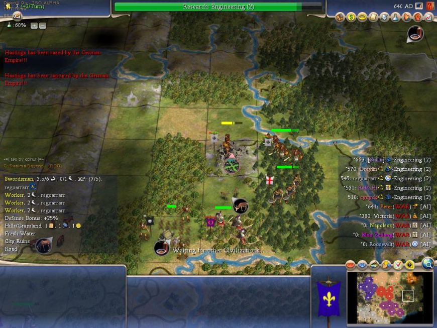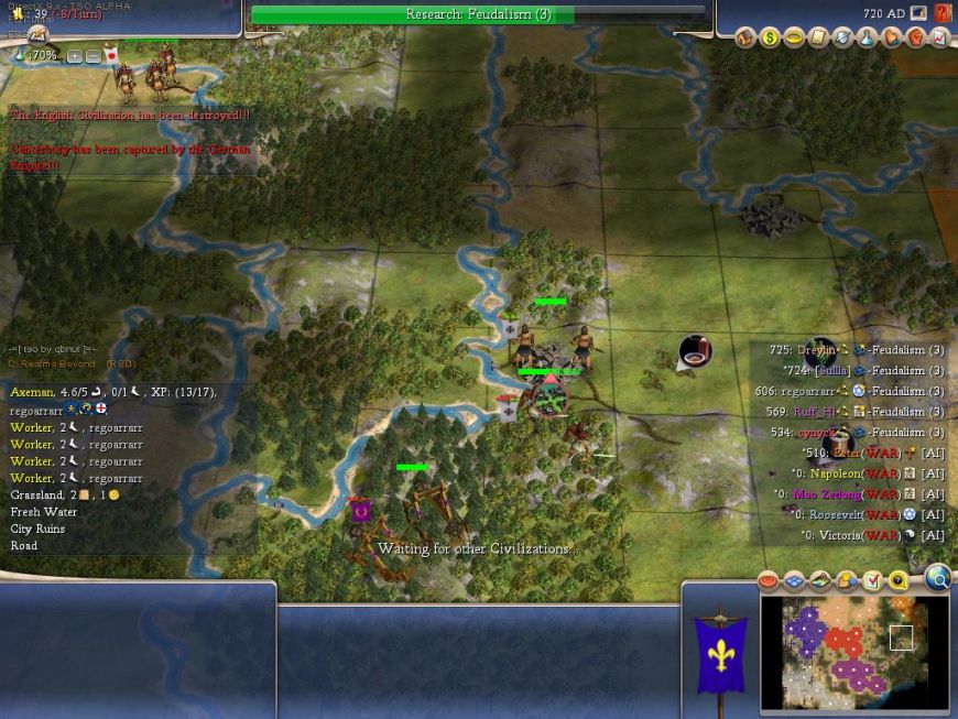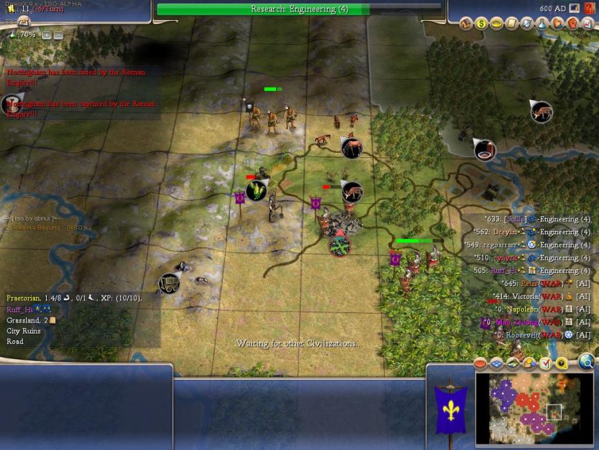 While regoarrarr and I were cleaning out the last two barbarian cities in the south, his Germans in the east were finishing off the final British city: