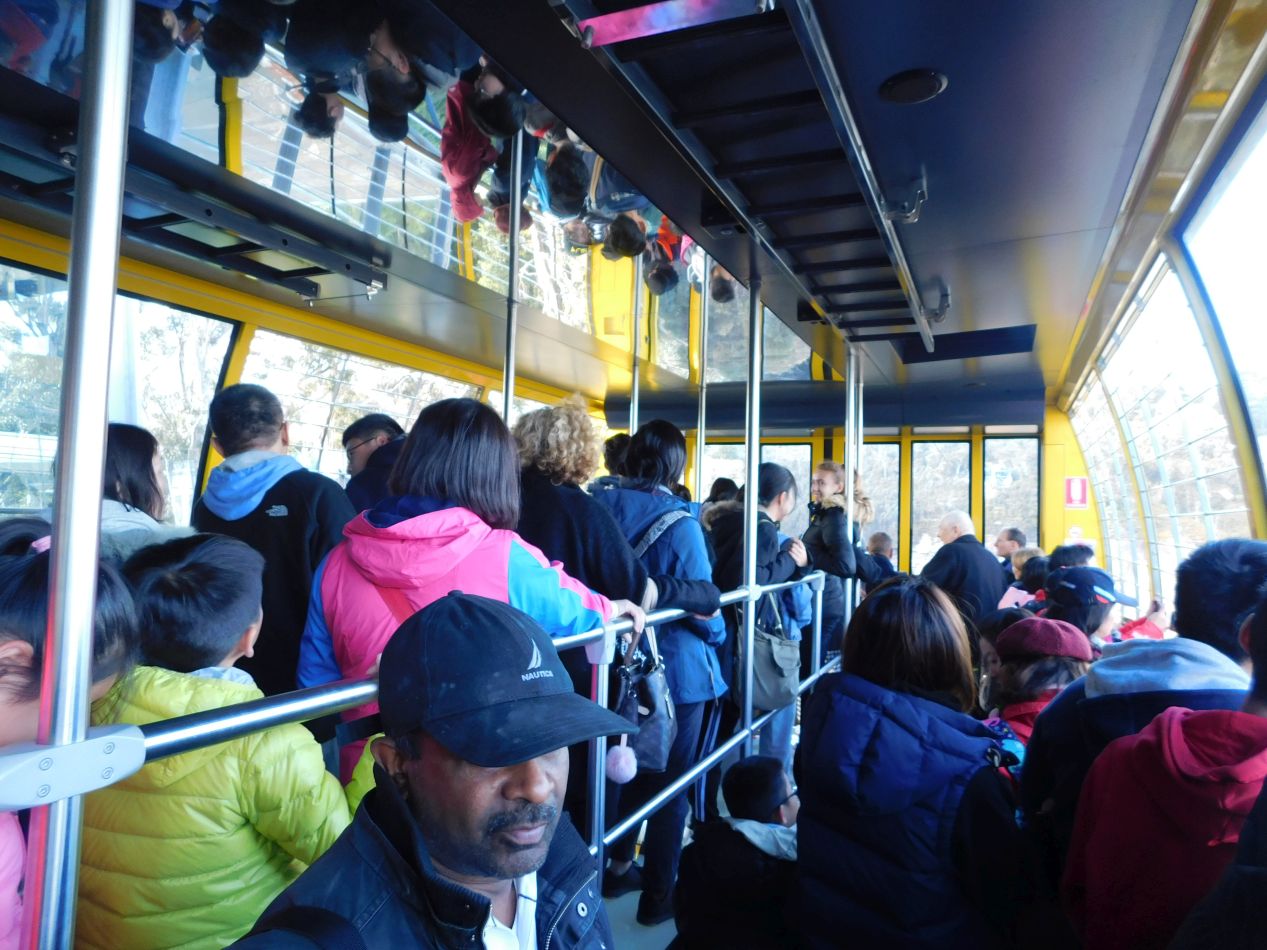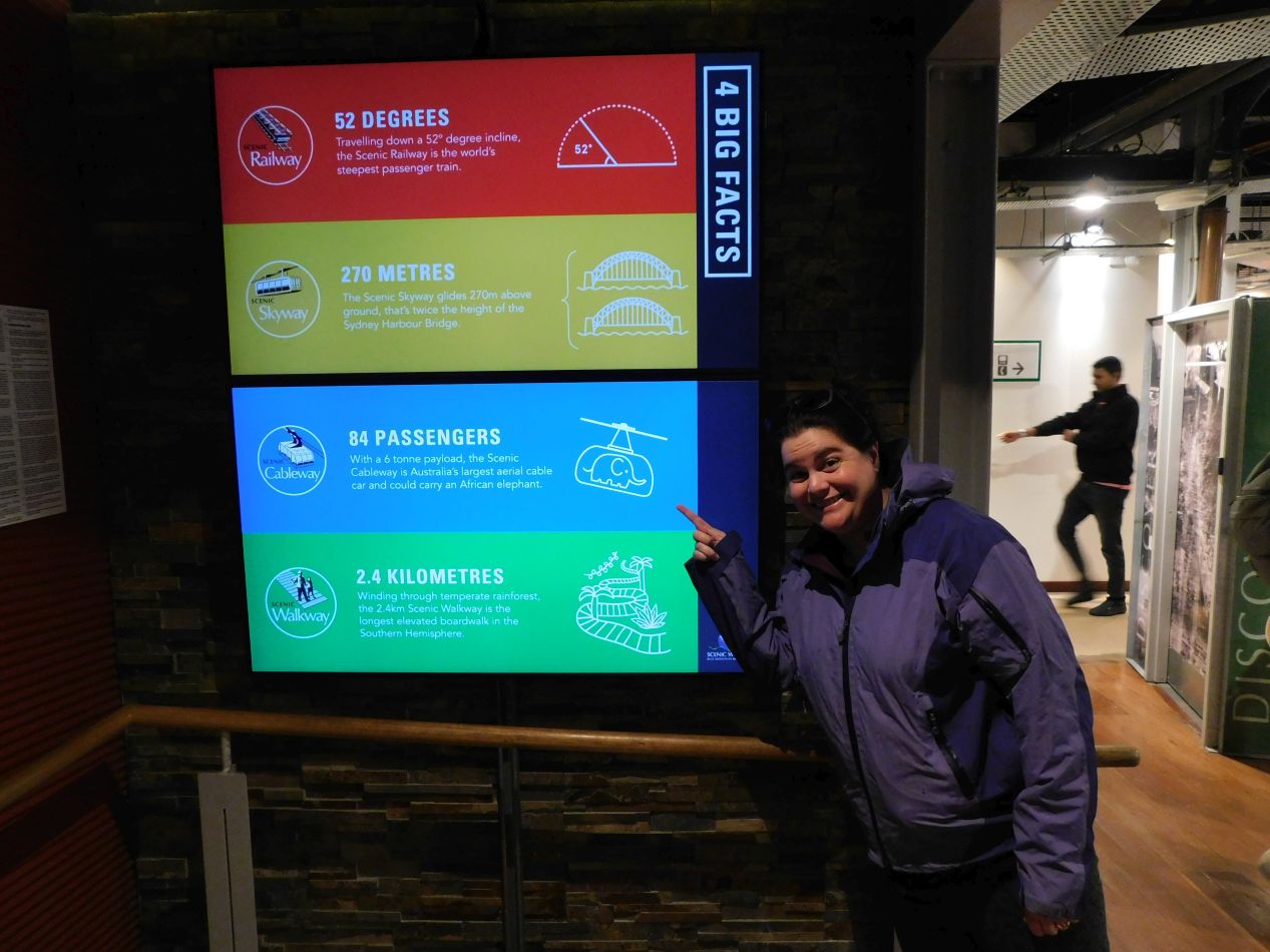 The main attraction that we would be visiting for the day was Scenic World, the name given to a series of different transportation experiences associated with viewing the Blue Mountains. This place started out by commercializing the Scenic Railway, an old coal mining track that runs at a ridiculously steep angle of 52 degrees, and then added the Scenic Skyway in 1958 and the Scenic Cableway in 2000 to continue attracting more visitors. This is a bigtime tourist attraction and there were lots of tourist buses already present at Scenic World when we arrived; with this being the slow winter season of the year, I'd hate to see how crowded the place gets in the summer. We poked around the gift store for a few minutes and picked up a couple souvenirs for the family back home, then tried to figure out which attraction we should try first.