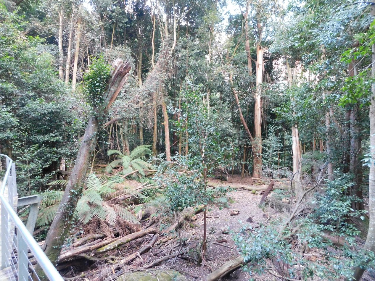There were more walking trails down in the forest at the valley floor, which Scenic World had branded as the "Scenic Walkway" as part of their ongoing naming gimmick. It was late in the afternoon at this point, with Scenic World closing for the day in less than an hour's time, and we had the walking paths all to ourselves. Walking through the forest on the raised boardwalks was quiet and relaxing, probably because there were no loud tourists to interrupt the natural beauty of the area. It was notably warmer down here in the valley as compared to up at the top of the cliffs and the temperature was almost pleasant for a change. The one type of wildlife that we spotted along the way was a group of lyrebirds, notable for their huge tails that trailed behind the rest of their bodies. The lyrebirds were digging in the leaves on the forest floor, scratching the soil with their feet and snapping up any insects that they uncovered in the process. It was quiet enough that we could easily hear the sounds of their feet kicking the ground, a series of "scratch-scratch" noises. We were the last ones out of these walkways for the day, with the park staff closing and locking the gates behind us at the exit.
