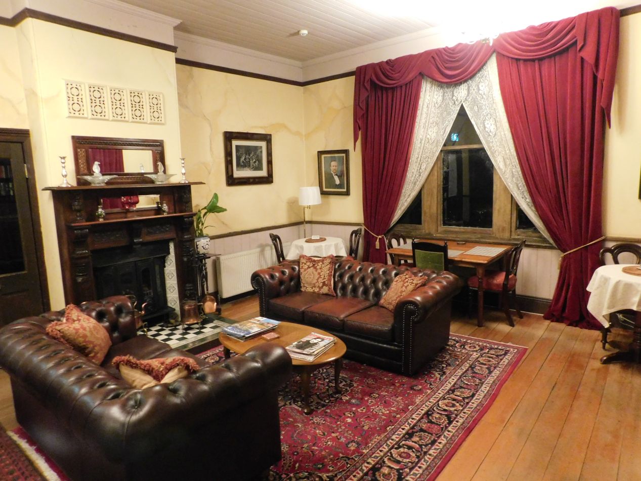 Finally, these are a few pictures of the bed and breakfast where we stayed for the night. This place was known as the Kurrara Historic Guest House and it was located in a quiet neighborhood in the small town, only a dozen or so blocks away from Echo Point. The bed and breakfast only had four or five rooms to rent out to visitors, and the house itself was more than a hundred years old. This meant that quarters were a bit on the cramped side, but the place made up for its age with elegant furnishings throughout the common rooms on the ground floor. We had a snug bedroom on the upper floor, where we turned up the heat and listened to the wind whistling around outside the window panes. It was quite cold outside on this night, colder than anywhere else we visited in Australia, with the temperature dropping below the freezing point. The mountains in the southern portion of the Great Dividing Range are just about the only place where it snows in Australia outside of Tasmania, and although we didn't see any snow on this trip, the conditions weren't far off from it. We heard that portions of Victoria did see snow on this night due to the chilly weather conditions.