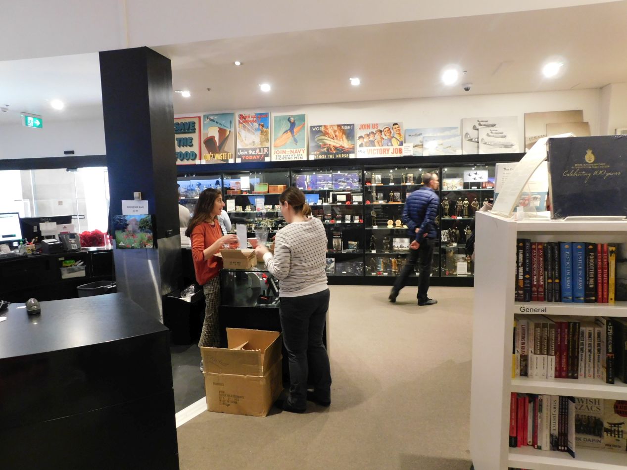 Finally, these were some scenes from the remaining World War II section of the museum, which eventually led into the excellent gift store. There were several exhibits here discussing the role that Australia's women and aboriginal peoples played in the war effort which unsurprisingly went unrecognized at the time. There was also a section on the hundreds of thousands of American servicemen who were stationed in Australia during the war, and the culture shock that resulted from their contact with Australians. This was particularly noteworthy for me because one of my grandparents spent about a year in Australia in 1942 and 1943 stationed in northern Queensland to help defend against a potential Japanese attack. The museum also recognized the Australian prisoners of war who died in the Japanese "death marches" and the victims of the Holocaust in Europe. There was very little on the Holocaust here but that made sense to me: this was a museum specifically about Australia's military history, not a general history of World War II, and Australia had no connection to the European theatre at all. They had more than enough on their hands at the time dealing with Japan. Overall, we spent more than three hours at the War Memorial, more time than we'd been anticipating. I have to thank Liz for indulging my interests here and not strangling me for using up so much of our limited time.