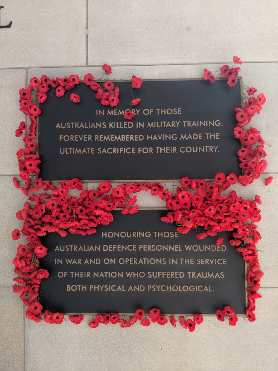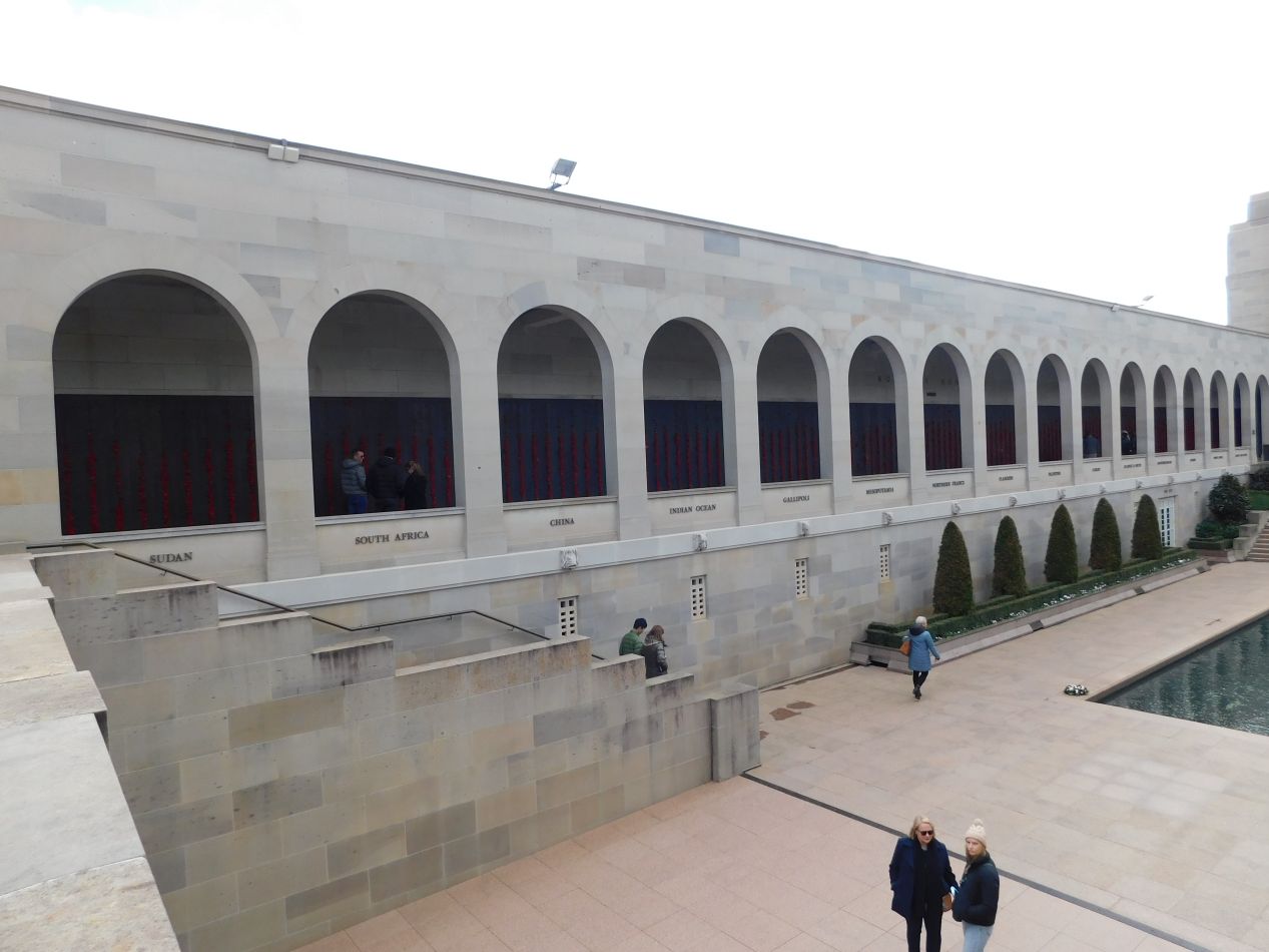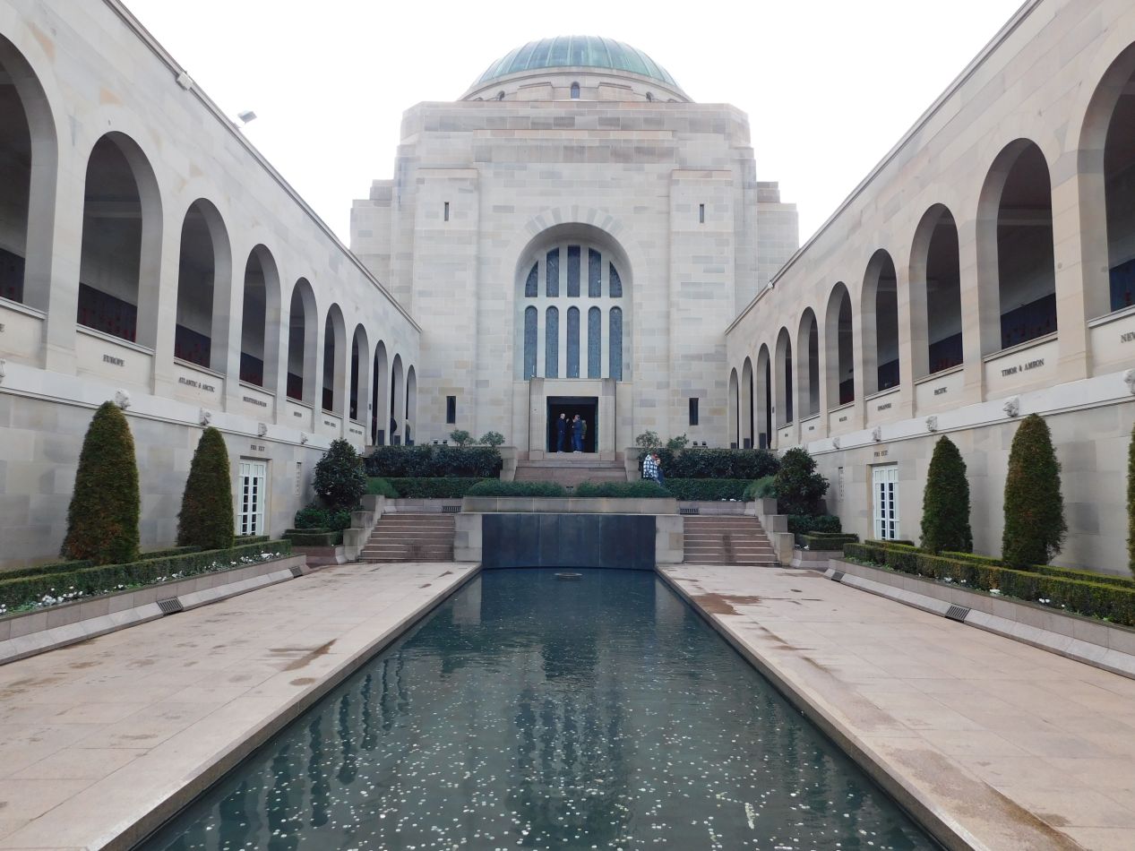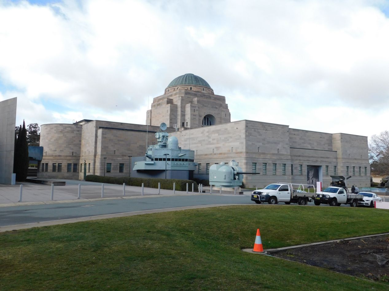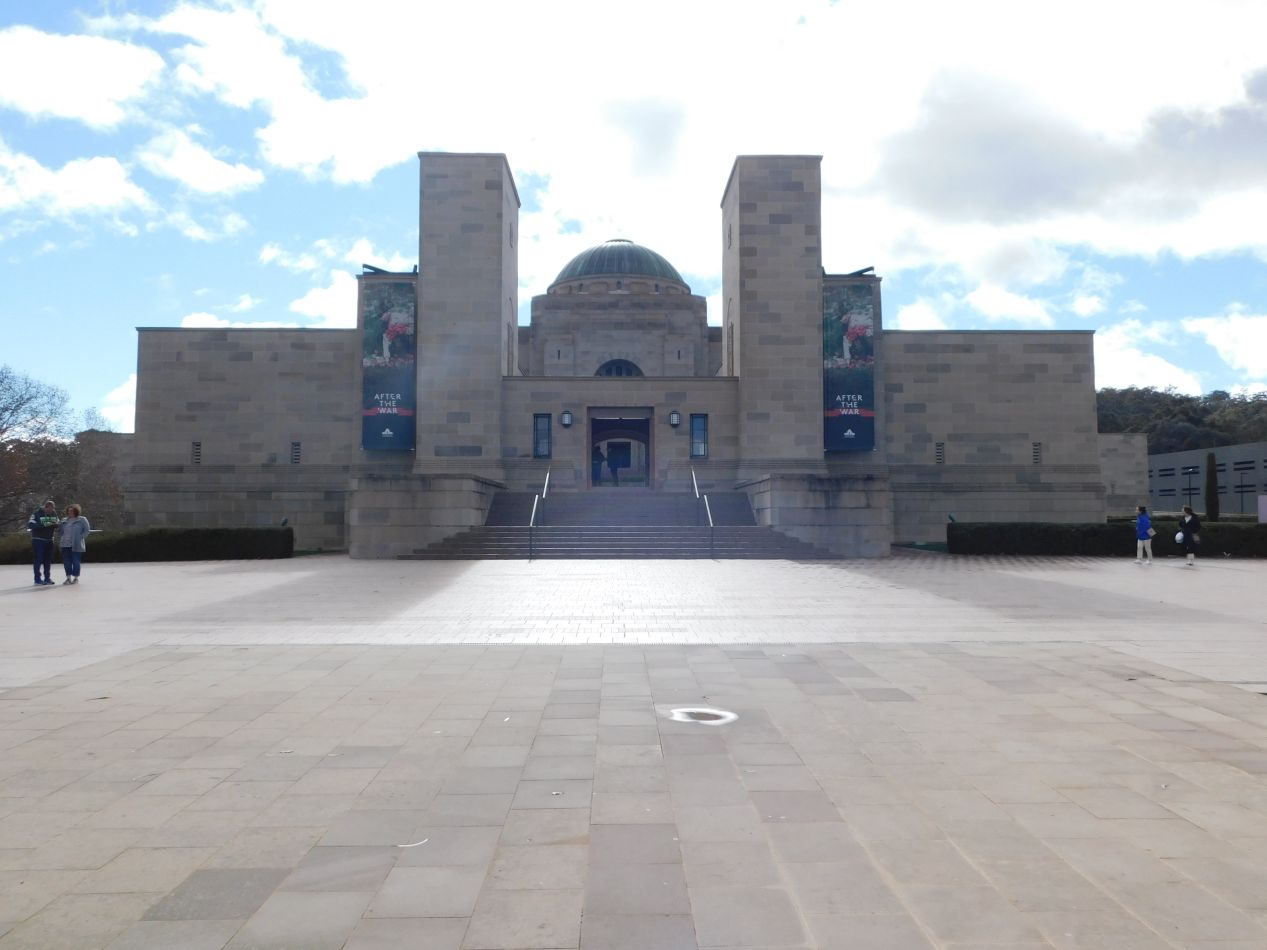 For our second day in Canberra, we planned to visit a number of the museums in the city starting with the Australian War Memorial. This is the national memorial dedicated to Australia's military veterans, and specifically those who have died in past wars. It was first conceived in the 1920s to commemorate the Anzacs in World War I and has since been expanded to include the service members from Australia's subsequent conflicts. The War Memorial holds a prominent place in the architectural design of Canberra, sitting at the northern end of the sight line that connects to the Old and New Parliament Houses across the shores of Lake Burley Griffin. We drove to the sight of the domed structure on this Saturday morning and noted the various military vehicles on display outside its doors. We had a clear view looking down the wide expanse of Anzac Parade towards the parliament buildings, with the two of them seemingly stacked one atop the other. The weather outside was partly cloudy but cold, setting the mood for our time inside the memorial.