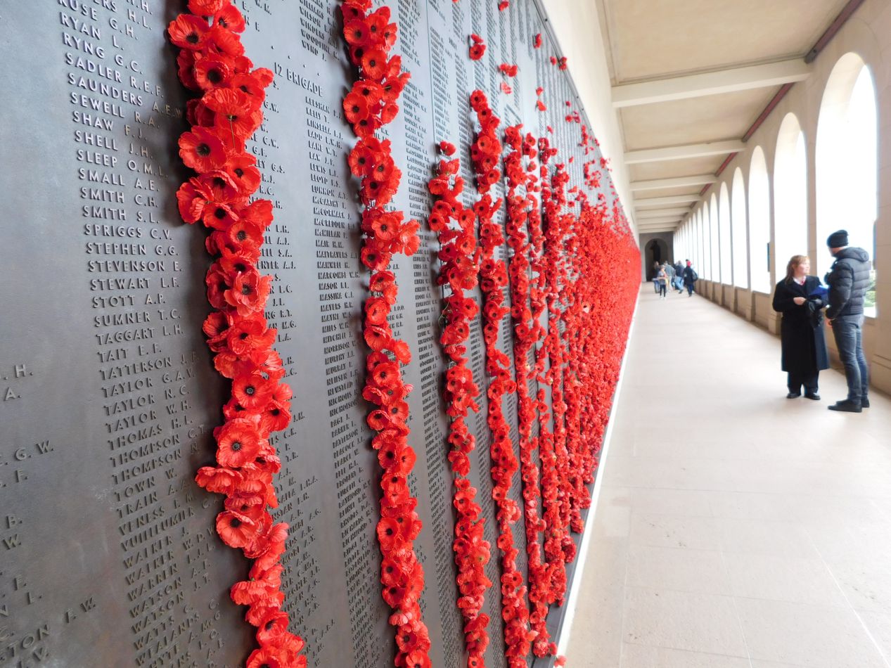 There's a tradition of placing poppies next to the names of the individuals that families and friends wish to honor, and over the years the War Memorial has accumulated thousands upon thousands of the small plastic red flowers. This is not specifically an Australian tradition, as I've seen more general usage of poppies to commemorate the fallen from World War I, but it's a beautiful act of generosity and giving thanks to those who made the ultimate sacrifice nonetheless. The presence of so many poppies created a visually striking series of images, and they were everywhere throughout this part of the memorial.