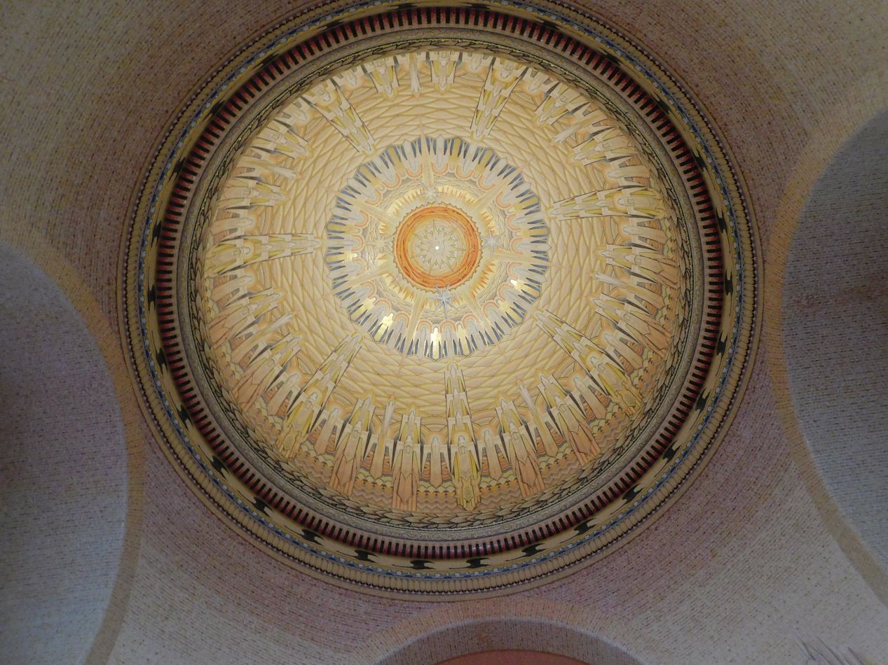 These pictures were taken from inside the domed Hall of Memory at the far end of the reflecting pool. This structure houses a small chapel along with Australia's version of the Tomb of the Unknown Soldier. The walls have been decorated with murals and stained glass depiction of Australian servicemen (and notably also Australian servicewomen). The Hall of Memory seemed to have an Art Deco aesthetic to its design, highly inspirational and uplifting in terms of its portrayal of human figures, which was also reflected in the stylized rendition on the dome's underside overhead. There's a tradition here of reading the story of one individual commemorated on the walls at the close of each day, in what is known as the Last Post Ceremony. Although we weren't able to stick around long enough to see it, the Last Post Ceremony is a lovely concept with no shortage of worthy candidates to honor (at the pace of one per day it would take almost 300 years to recognize all of the current names on the walls, much less any others added in the intervening time). The Hall of Memory was a vivid demonstration of how central the memory of the Anzacs has been to the formation of Australian national identity.