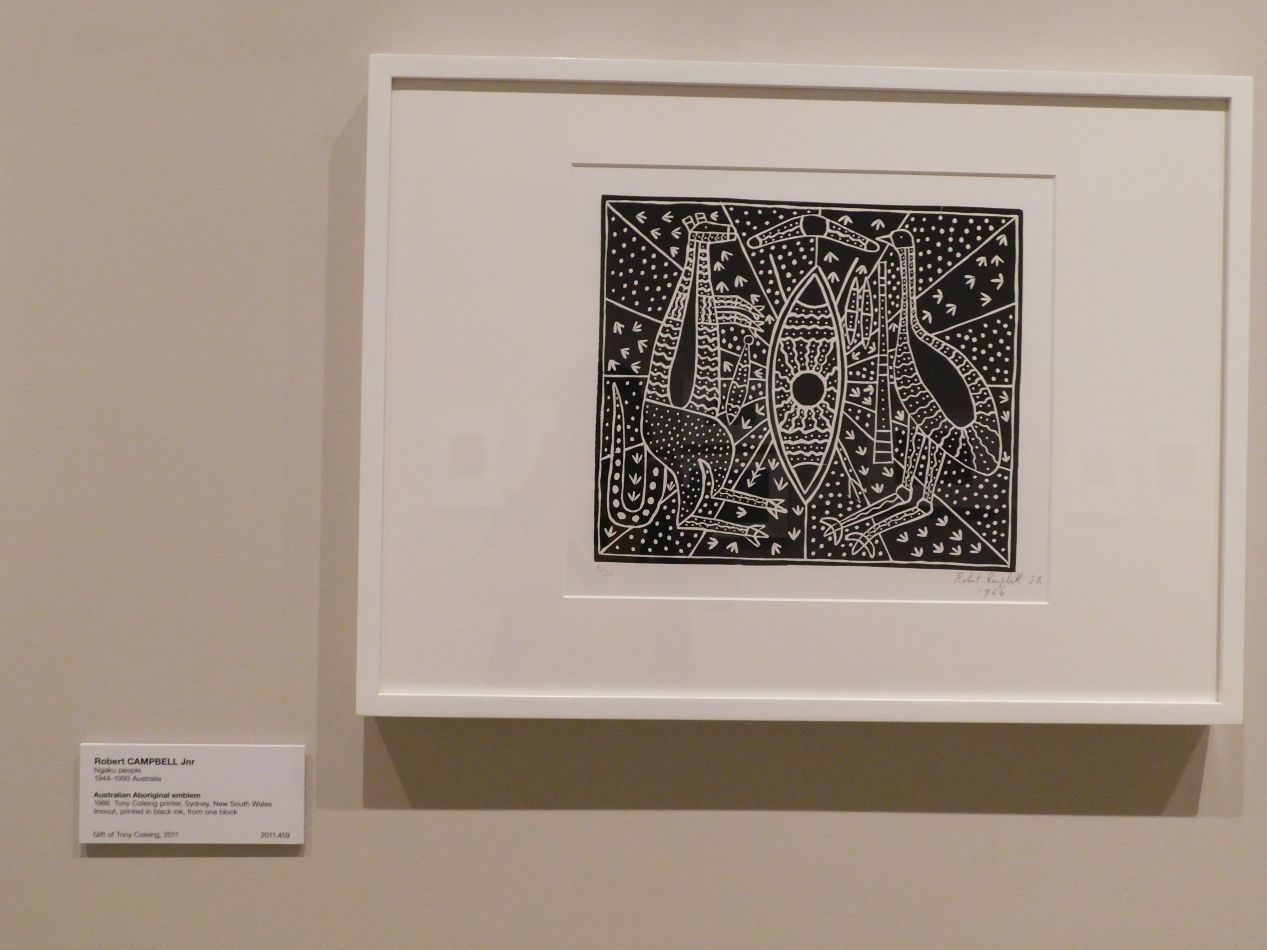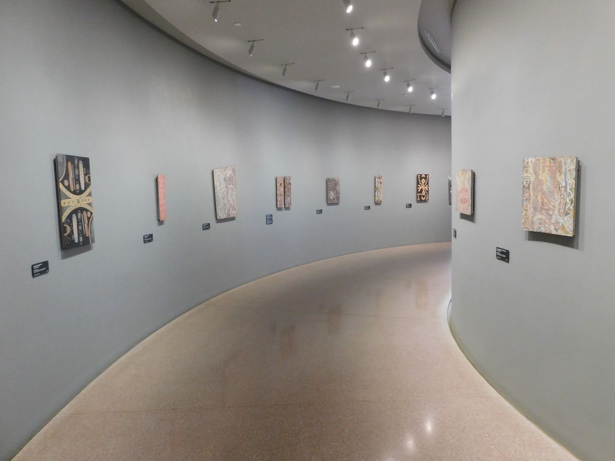 This is a small sampling of the aboriginal art on display in the museum. In addition to Australia itself, the museum also contained artwork from the indigenous inhabitants of the Torres Straight Islands and Polynesia. Some of this artwork was abstract or geometric in nature, while others were bitterly satirical and called attention to the economically depressed circumstances of most native peoples in Australia. These were unique collections unlike what visitors would be able to find elsewhere, and we appreciated the opportunity to experience these native perspectives on Australia.