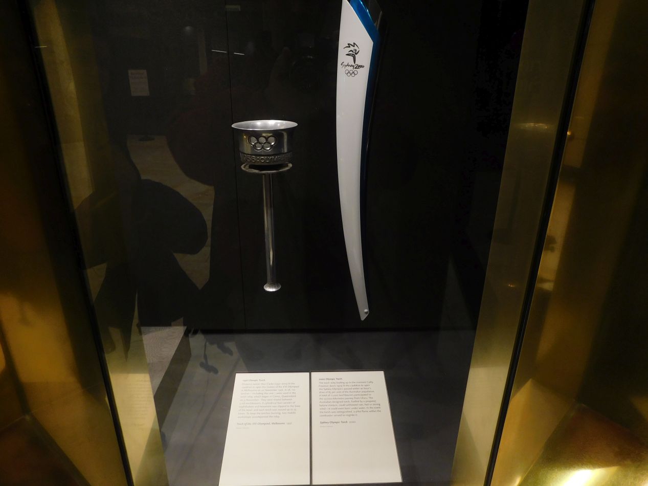 Located near the National Gallery was the National Library of Australia, which we also hopped over to check out for an hour or so. As the name suggests, this building houses the national library collections for Australia and includes at least one copy of everything published in the country. Although only established in 1961, the National Library contained more than 6.5 million individual works at the time of writing. We found that this building was mostly intended for use by researchers, although there was an excellent cafe where we picked up something small to eat. The one section intended for visitors was the Treasures Gallery, a small museum space containing various artifacts of special interest held by the library's collections. These included some of the original manuscript notes from Captain Cook's exploration of Australia and the First Fleet of colonizers, all the way up through the modern period with fliers for political campaigns and major cricketing competitions. I found the most interesting objects on display to be the two official Olympic torches used for the two times that Australia has hosted the games, in Melbourne in 1956 and in Sydney in 2000. The contrast between the design of the two torches was fascinating in its own right.