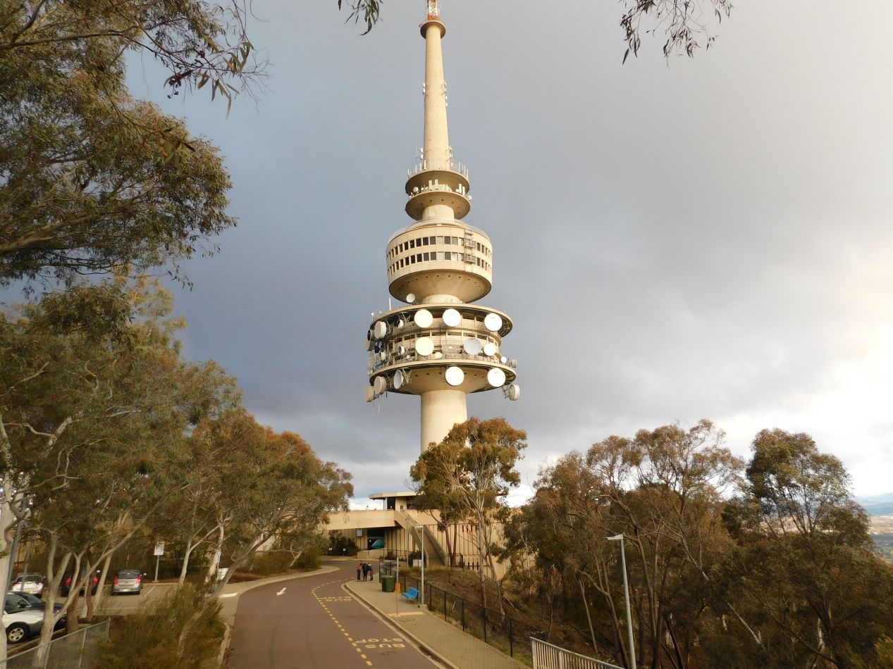 We wrapped up the day by driving to the nature park at the top of Black Mountain. This is the home of the Telstra Tower, a telecommunications tower that also doubles as a tourist attraction overlooking the city. Rising 195 metres / 640 feet above the mountain summit, the Telstra Tower is a landmark in Canberra and offers panoramic views of the city and its surrounding countryside. I had been hoping that we could go up to the top to experience some of the views looking out over Canberra, but we ultimately decided to pass on the opportunity, in part because the sky was turning ominous and this didn't seem like a great time to be heading up to the top of a metal tower. Here's a panoramic image of what the view looks like from the top courtesy of Wikipedia.