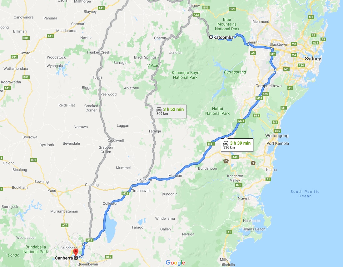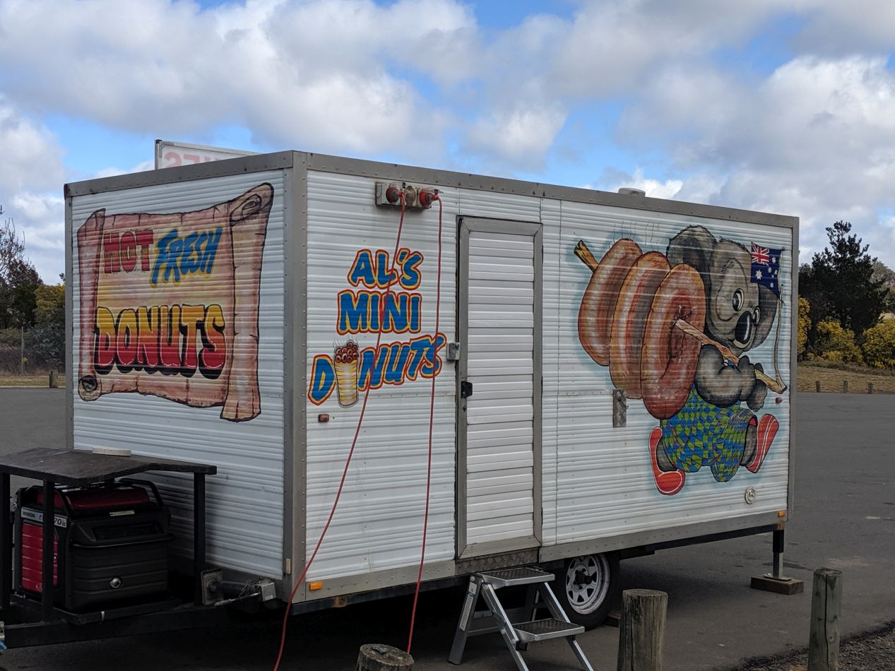 It took a little bit longer than we were expecting to make the drive from Katoomba in the Blue Mountains down to Canberra, about four hours in total. The fastest route involved driving back into the western suburbs of Sydney and then heading south on a combination of the M31 and M23 highways. This was another good example of the gigantic size of Australia as a country; although we covered hundreds of miles on this morning drive, Sydney and Canberra are located practically next to one another on any map of the full continent. The weather was refusing to cooperate again as we experienced another dreary day outside, with intermittent rain falling along with windy conditions and cold temperatures. We were both wearing our warmest coats and I was regretting not packing gloves with me. The most notable part of the drive came from a rest stop that was selling hot mini donuts, which came in a little package like the kind used for fries at a fast food restaurant. These donuts made for a great snack while awaiting a more formal lunch in Canberra.