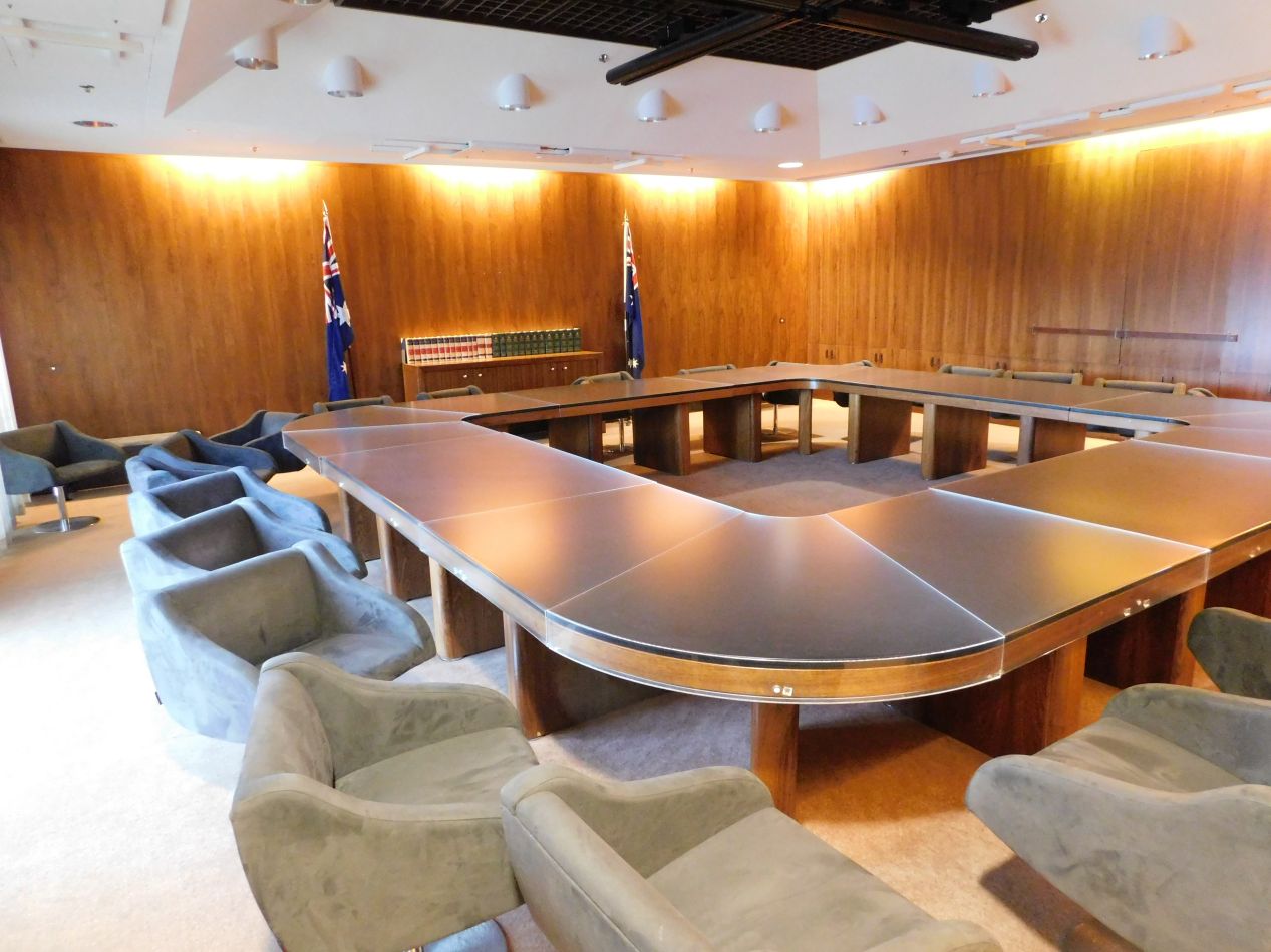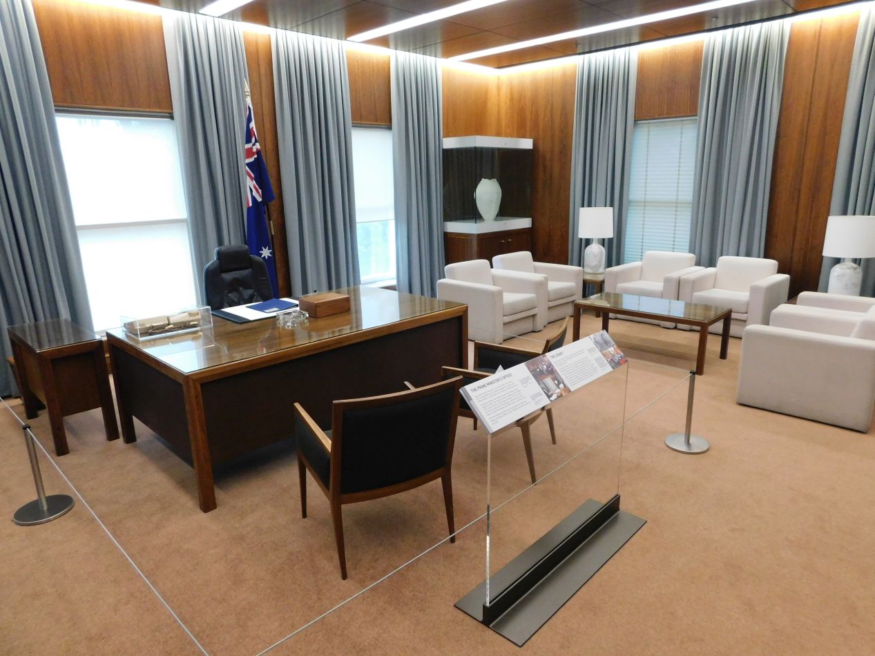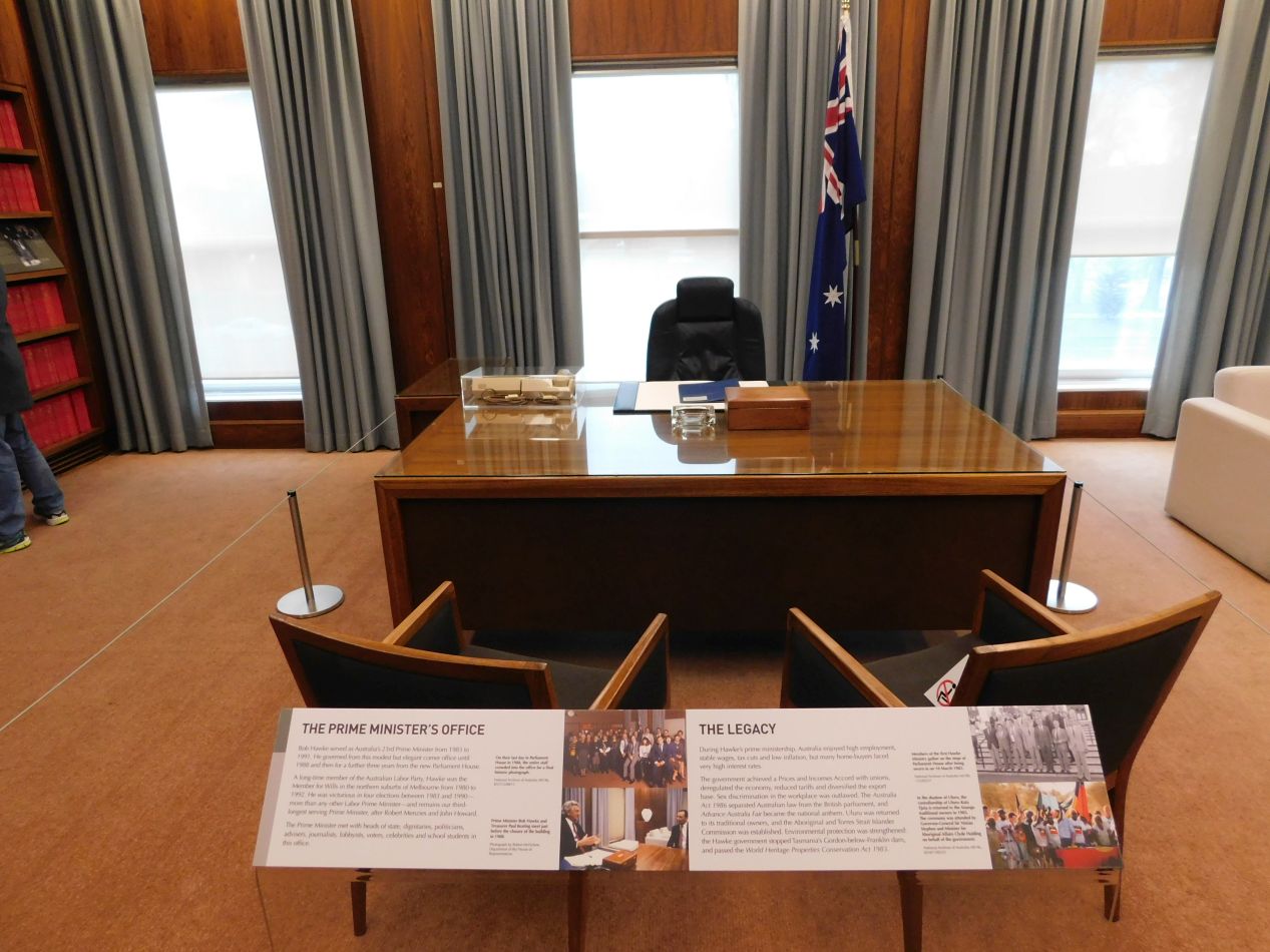 At the other end of the Old Parliament House were the government's offices, including the office of the Prime Minister and the room where the Cabinet met. These were all frozen in time as they had looked when the government moved to the New Parliament House in 1988, and it was amusing to see all of the 1980s office technology preserved in stasis, lots of analog telephones and fax machines and typewriters. The informational signs stated that the last prime minister to serve in this building was Bob Hawke, and all of the pictures involved him and his staff in some form. There were less than a dozen total rooms in the suite of government offices, and it was again kind of stunning just how small everything was in the Old Parliament House. The building was designed to hold about 2000 people in total and we read that there were almost 20,000 people working there in some capacity by the time that it closed down. Old Parliament House in its entirety was smaller than a single floor in the government building where I work at present; I have no idea how the entire country of Australia was run from this place as late as 1988.