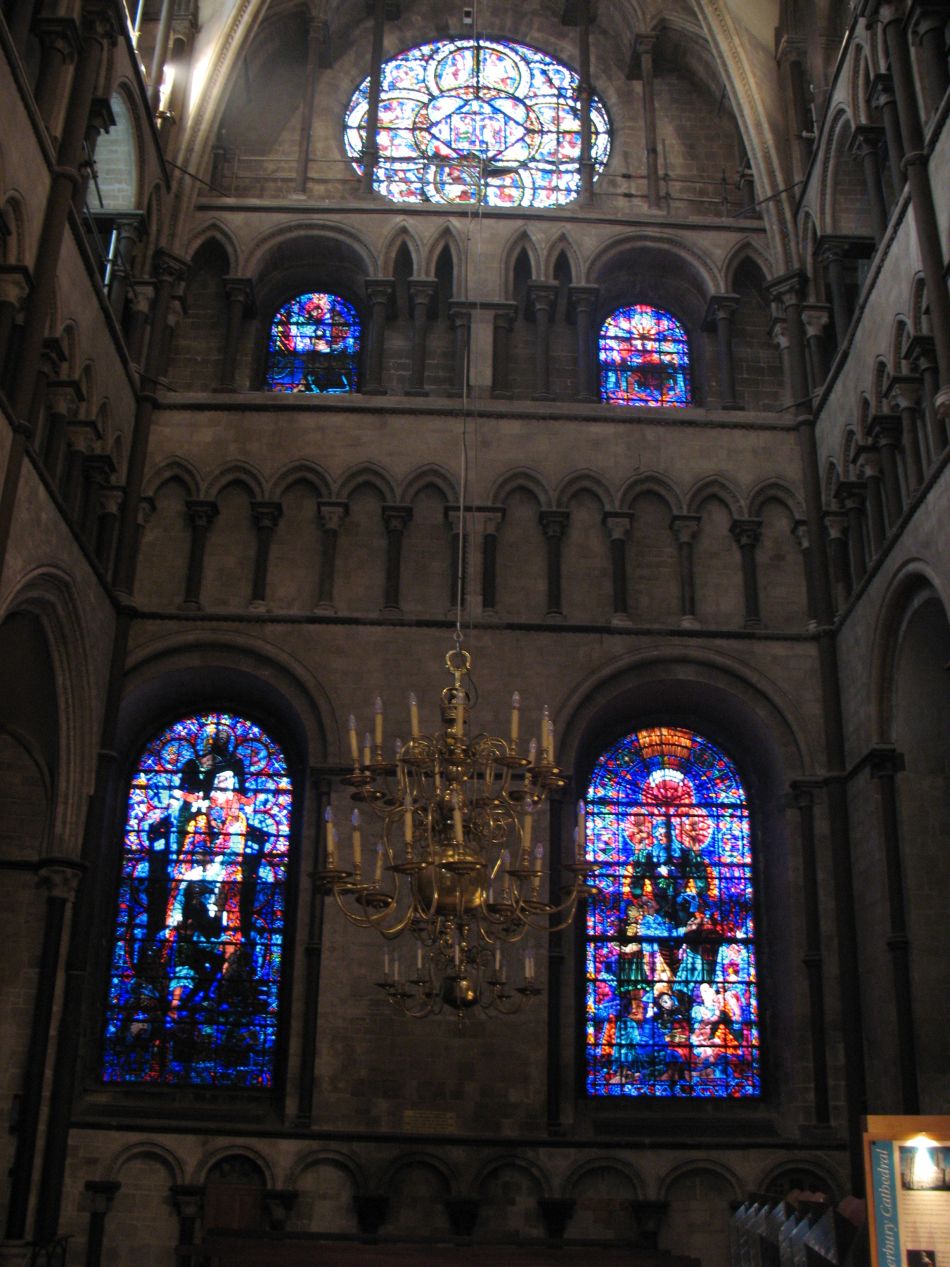 Canterbury Cathedral was designed in the Gothic architectural style. While I'd seen plenty of other Gothic cathedrals before, Canterbury was one of the places that served as a touchstone for the design, a model that was endlessly copied and imitated elsewhere. The common Gothic stylistic elements were all present here: high ceilings held up by a double row of stone pillars on the interior, arching stone vault overhead, and colorful stained glass windows high up along the walls to let in outside light. Canterbury Cathedral has some unique features of its own though, such as a double cruciform design (two horizontal sections instead of the standard one) as well as a cloister and chapter house attached to the side of the building. This was a remnant of the cathedral's days as a monastery before Henry VIII dissolved them during the Protestant Reformation. I continue to be annoyed that many of these interior photos didn't turn out very well and therefore failed to capture the beauty of the structure. Some of the upcoming ones turned out a bit better.