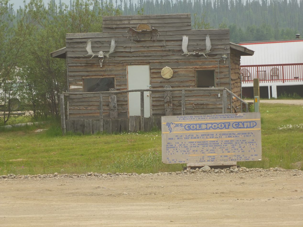 I reached Coldfoot in the late afternoon, the stopping point for this first day along the Dalton. Coldfoot is a permanent home to only a dozen people year round, and largely serves as a rest stop for the truckers who pass back and forth along the highway with their cargoes. This is the last place to refuel with gasoline for the next 240 miles, which means that filling up is pretty much mandatory. I stopped first to visit the Arctic Interagency Visitor Center, a surprisingly nice information center built by several different park and wildlife agencies. This building was constructed recently and it wouldn't look out of place in a national park like Denali. There were some well done exhibits inside explaining the astronomical phenomena that take place above the Arctic Circle, and a whole bunch of pictures and models about the wildlife that live in this region. The whole setup felt like it was too well done for this extremely remote area; I can't imagine they get more than a handful of visitors each day. The best part was a description of what happens to the visitor center in winter, when the whole building is buried under snow under the next spring. Needless to say, it closes for the year at the end of summer.