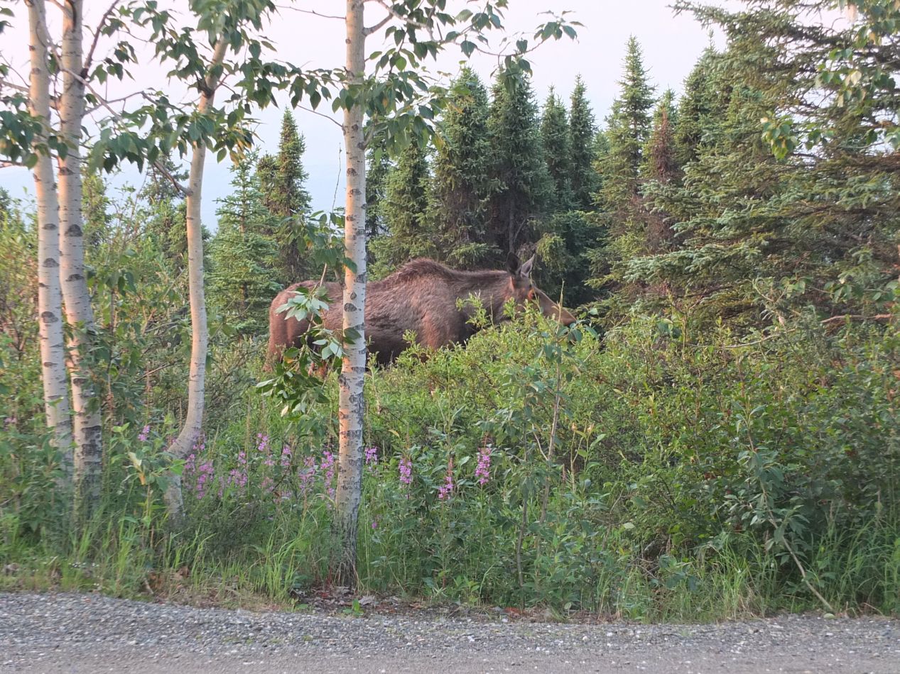 There was also wildlife to spot, with caribou in particular ranging all over the park. I zoomed in to take a picture of a male deer with prominent antlers above, snacking on some tasty summer foliage. I was hoping to see wolves, bears, and moose as well on this trip, but had no luck thus far.