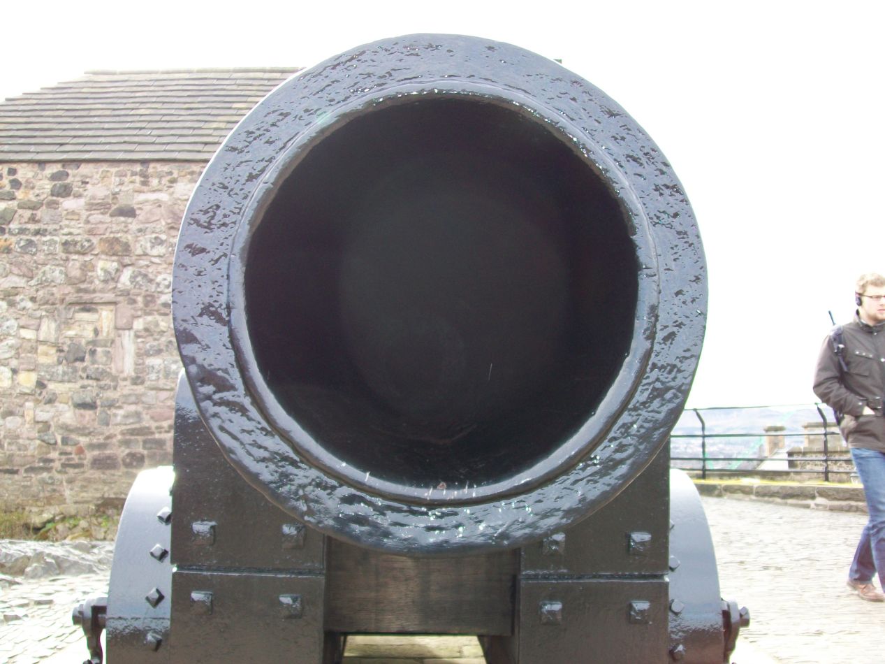 It was fun to see these artifacts even if I was very familiar with the events of the Mysore Wars by this point in my dissertation research. Up on top of the castle walls there was another military artifact of interest: Mons Meg, one of the few surviving early cannons. Mons Meg was built in 1449 on the orders of Philip the Good, Duke of Burgundy, and it saw use in a series of sieges over the next century. Early cannons like this were known as "bombards" and they were the main reason why medieval castles became obsolete. Mons Meg fired absurdly large 20 inch / 510 millimeter balls that weighted about 175 kilograms / 385 pounds apiece, and it could take as long as an hour between shots due to the need to clean the gun and wheel it back into place. We actually discussed Mons Meg as an example of a bombard in my military history class and I had no idea that it was located at Edinburgh Castle; I particularly enjoyed the sign that read "Please do not climb on Mons Meg".