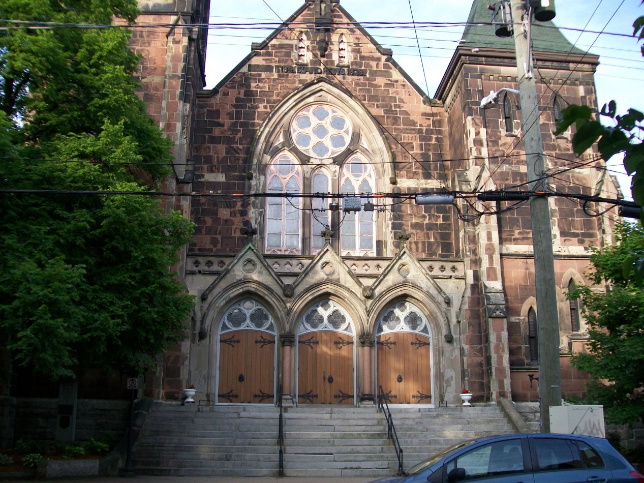 Saint John is split in half geographically by the St. John River, and these pictures were taken in the oldest part of the city, the section on the eastern bank. While walking through the quiet streets on this Sunday evening, I came across several of the oldest churches in the city. Trinity Church was the oldest one, an Anglican place of worship dating back to 1783 (the same year that the American Revolution ended) and calling on its sign for visitors to "enter, rest, and pray in the church of the Loyalists." Hmmm, it sure sounded like some people still had ruffled feathers from events more than two centuries earlier! Nearby was another stone church, the Kirk of Saint Andrew and Saint David, with the name indicating that this was the combined Presbyterian/Congregationalist/Methodist denomination that makes up the United Church of Canada. This area was surprisingly residential for the downtown portion of a city, even one as small at Saint John. Apparently the business district was in the other direction.