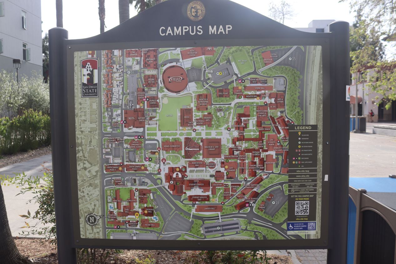 I walked north from the student union through Centennial Plaza, passing by the campus library to my left and then finding myself at the SDSU bookstore. This was the place to get all kinds of clothing and souvenirs branded with the SDSU or Aztecs logo even if it wasn't quite as absurd as I've seen at some other American universities. The big news at the time of my visit was the SDSU men's basketball team which had stunningly made it all the way to the national championship game in 2023 before losing to UConn. That was an order of magnitude better than the team had ever done previously; they had never even reached the Elite Eight before, much less the Final Four! As for the "Aztecs" name used by the SDSU athletics teams, I was baffled as to why the university employed the name of a Native American group that hadn't lived anywhere close to San Diego. The Aztecs were based in central Mexico, more than a thousand miles distant. It turns out that this was another one of those problematic mascot names picked by the student body back in the 1920s when Native American groups were treated much the same way as animal mascots. SDSU has approached the subject much more respectfully in recent years, far better than this logo that they used back in the 1960s, but there's still been sizable pressure for the university to change the team name to something else. As of 2023, they were still using the Aztecs name though.