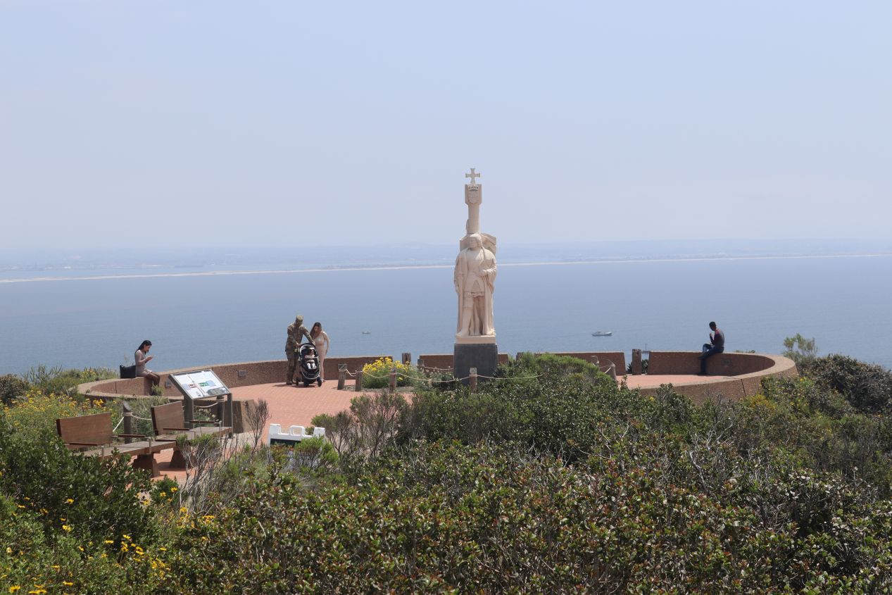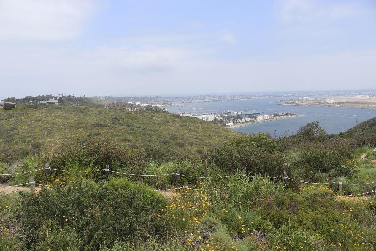 Near the visitor center was a statue of Cabrillo himself situated on top of a hill with steep slopes leading down to the water below. The statue has an interesting history as it was commissioned by the Portugese government in 1939 and gives Cabrillo his Portuguese name (João Rodrigues Cabrilho) despite the fact that the man sailed under the Spanish crown. The statue arrived too late to be part of the 1940 Golden Gate International Exposition in San Francisco and spent some time sitting in a private garage followed by a military base before it was finally put on display here in 1949. The current statue is a replica as the original one was badly eroded by wind and surf. The real attraction of this spot was not the statue though but rather the gorgeous views looking out across San Diego Bay. The downtown was easily recognizable past the airfields on Coronado and I could make out the convention center and the baseball stadium when I zoomed in with my camera. This spot was also isolated enough that my phone thought that I'd crossed the border into Mexico - it sent me a bizarre "welcome to Mexico!" text that I definitely hadn't been expecting.