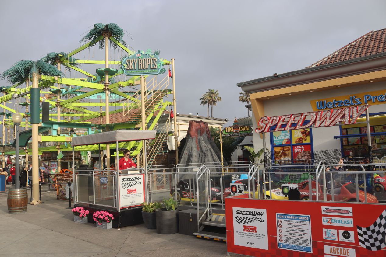 To close out the day, I drove west towards the setting sun until reaching the Pacific coastline once again at Mission Beach. This parking lot turned out to be located right next to the historic Belmont Park, an amusement park which has stood on this spot since 1925. The big draw here was the Giant Dipper, a wooden rollercoaster that dates back to the park's founding, and it was joined by a dozen other carnival attractions like bumper cars and tilt-a-whirls and so on. I was surprised to find that this random weekday in late April had drawn a pretty big crowd to Belmont Park, enough that the place was busy if nowhere near what the summer months would bring. Belmont Park included an indoor pool area named The Plunge, which was originally a huge saltwater enclosure before being torn down and replaced with the modern freshwater pool pictured here. My one disappointment was checking the arcade and failing to find a Dance Dance Revolution machine, oh well.