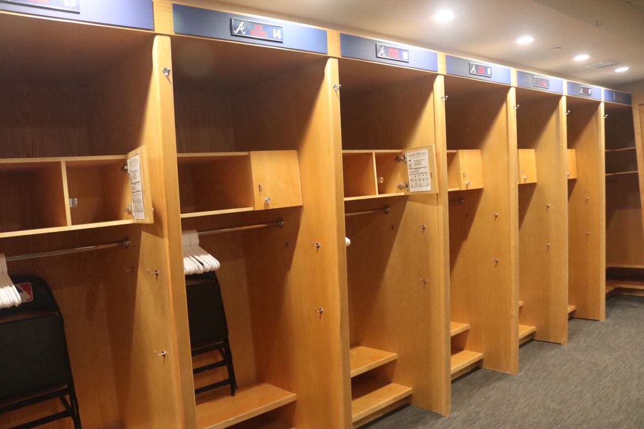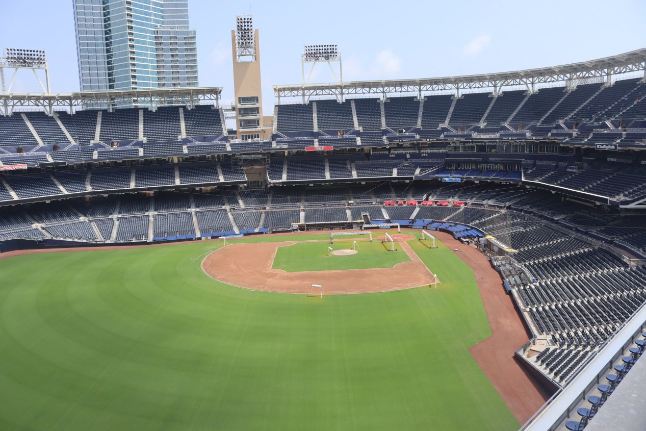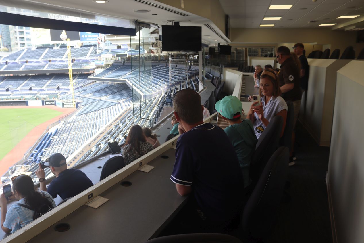 Petco Park is one of the smaller stadiums in terms of seating capacity for Major League Baseball and it had a very open feel to it. This impression was enhanced by the fact that most of the concession stands were situated next to the stadium in their own buildings rather than being incorporated into the stadium itself, leaving room for more unobstructed views. We were taken to the press box where we could see the perspective of the local and visiting media members who came to cover the Padres. There was a good bit of Padres memorabilia on display here including the pictured wall dedicated to the team's three Hall of Famers. Dave Winfield didn't even play that much of his career with the Padres and mostly went into the Hall wearing their uniform as a way of spiting the Yankees while Trevor Hoffman was a closer, generally not seen as a terribly valuable role by modern analytics. At least Tony Gwynn was beloved by everyone; I'd be seeing a lot more stuff with his name on it throughout this tour.
