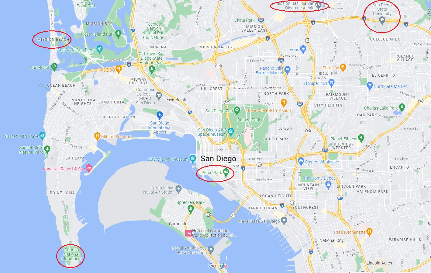 Every now and then, I get the chance to travel for my work to different parts of the United States to take part in conferences held by the American Medical Association. I've written about a number of these previous trips that took me to places like Miami and Phoenix and San Diego. During the spring of 2023, another one of these work trips took me back to San Diego for the third time in eight years (and fourth time in total after visiting earlier as a kid). I had previously walked around the central downtown part of the city and then visited the San Diego Safari Park outside of the city on my followup trip. For this latest trip to San Diego, I decided to get a rental car for the day and drive around to various attractions that I hadn't previously experienced. There's no particular connection between these locations other than "things that I thought would be interesting" in the greater San Diego area. Before the day was finished, I would be visiting the Pacific coastline, the San Diego Padres baseball stadium, the oldest mission church in California, and the campus of San Diego State University. As I said, a bit of an eclectic bunch.