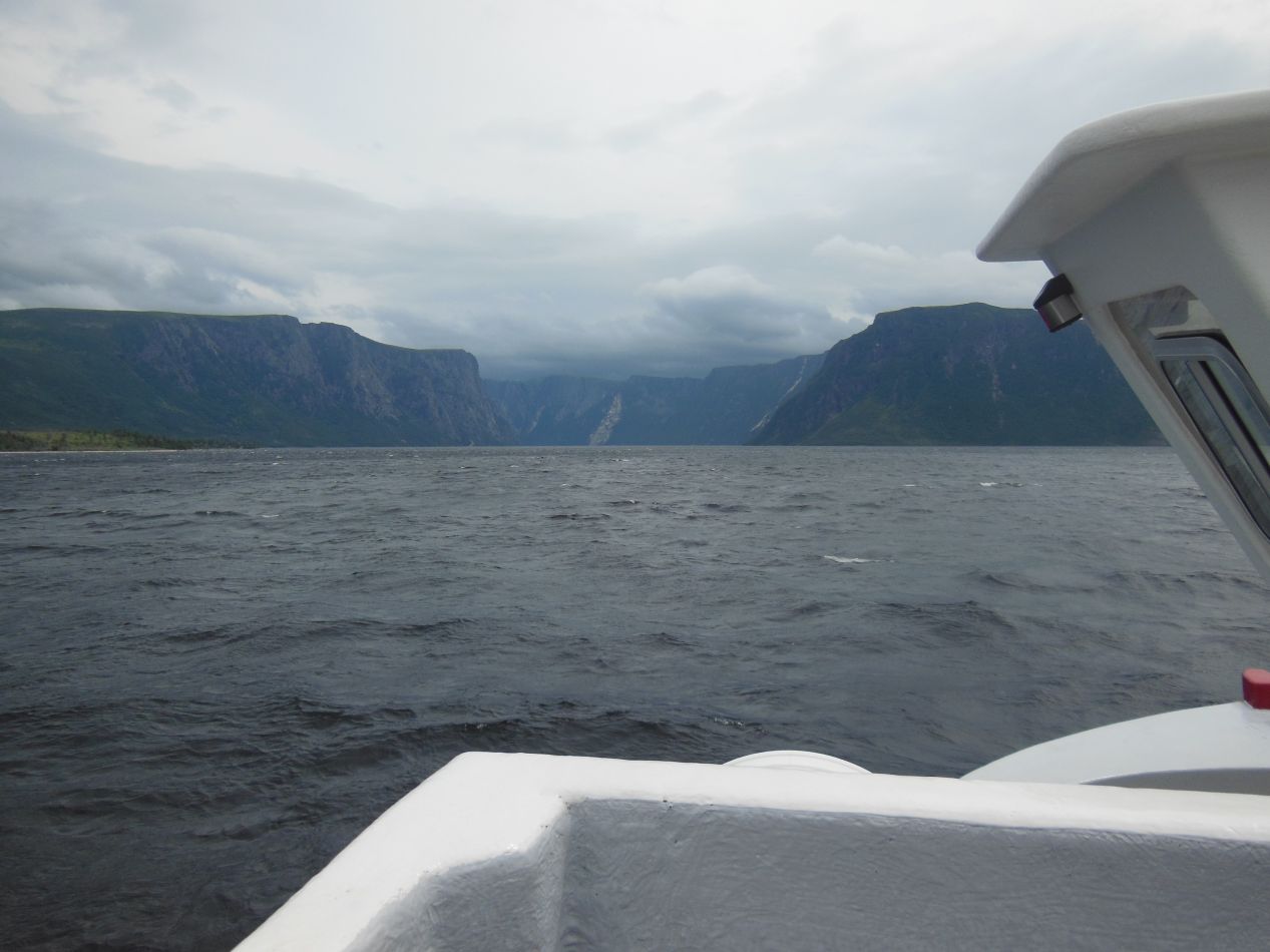 The tour boats plying Western Brook Pond were small affairs, carrying about 50 tourists at most on each trip. This was the most expensive part of my stay at Gros Morne, and the only attraction where I'd needed to make a reservation ahead of time. When we boarded the boat and headed out into the waters of the pond, it immediately became apparent that this trip would be a lot rougher than the one on the huge ferry ship that had brought me to Newfoundland. The wind was whipping up some decent waves on the surface of the water and the small boat was bobbing up and down constantly, carried from crest to trough between each wave. This was a lot of fun and practically worth the cost of the boat ticket all on its own. Up ahead were the deep sides of the canyon, carved out by glaciers in Canada's recent geological past. It was very easy to imagine that I was in Norway here, touring one of the fjords (as I would actually do several years later).