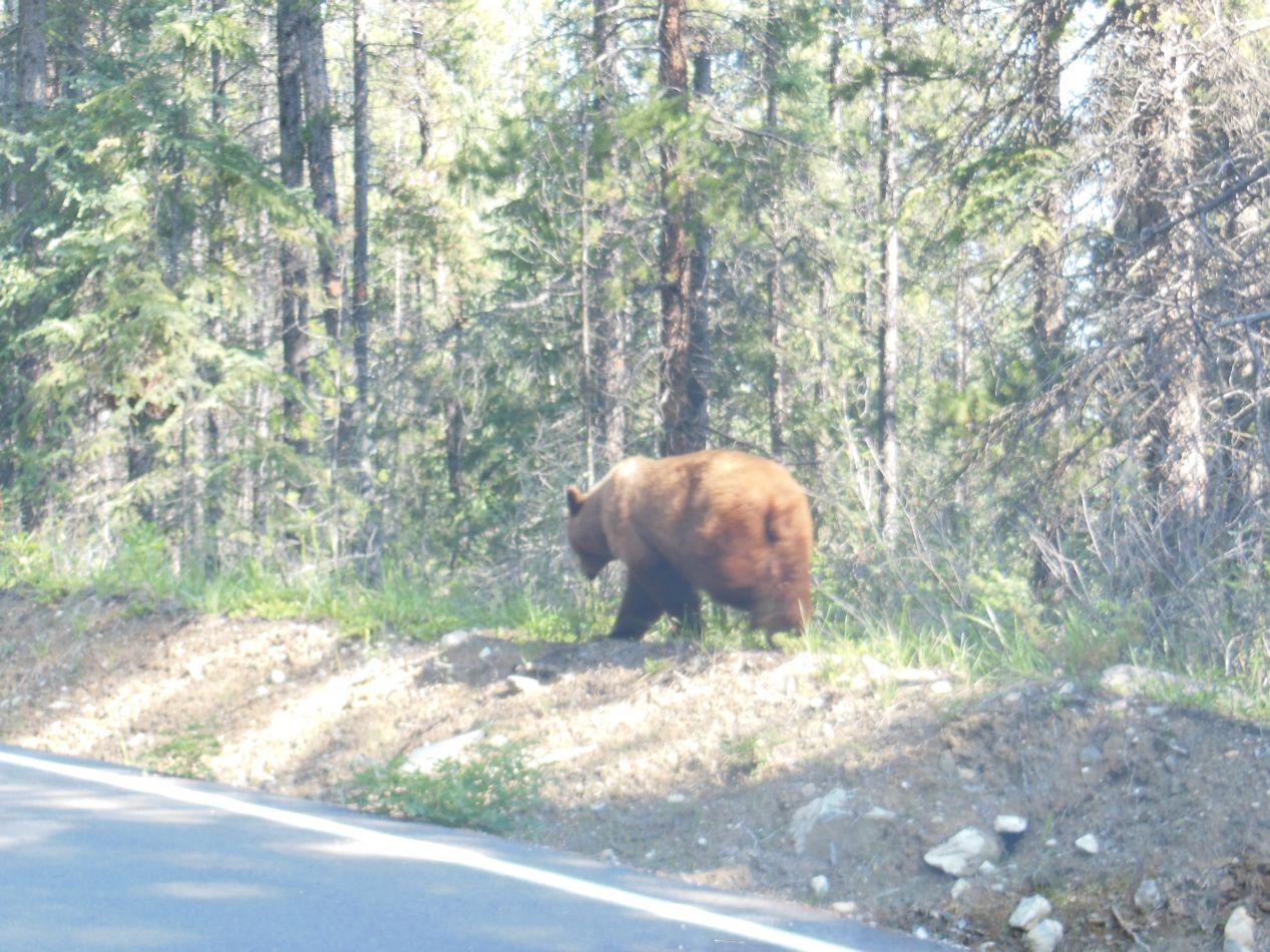 It was clearly a mamma bear and her cub born earlier in the spring, and the little bear was absolutely adorable. I slowed down to a crawl so that I could take pictures, which backed up traffic behind me on the road but I didn't really care about that. Besides, most of those drivers were probably taking their own pictures. This was just about the best situation possible to come across bears in the wild: close enough to get a fantastic look while still being inside my car for safety. I would not have wanted to run across a mamma bear while she was with her cub out on a hiking trail, as that's about the most dangerous situation possible. The only unfortunate thing was that the two bears were on the passenger side of the road, although I suppose that if they had been on the driver's side the view might have been blocked by cars heading in the other direction who were also stopping to gawk. It was too bad that I didn't have another person with me to take the pictures. It's not exactly easy to photograph out the passenger side window while also driving at the same time. Nevertheless, this was an incredibly lucky find. Two grizzly bears spotted in the wild, amazing!