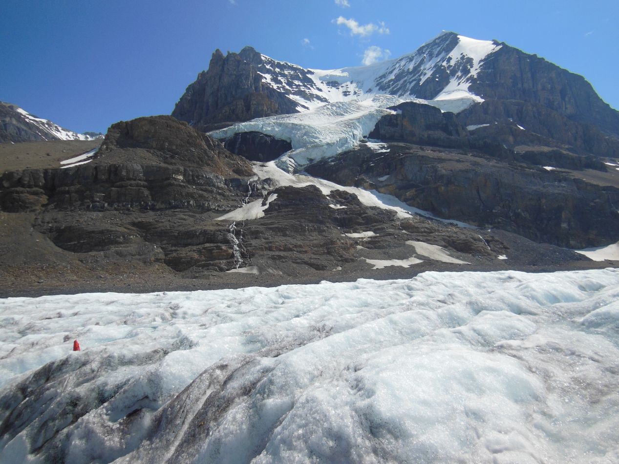 After a few minutes of riding on the snow coach, it stopped to let everyone out at a specifically prepared section of the glacier. The area had been smoothed out and stabilized to make sure that it was safe to let visitors walk around. The operators repeatedly warned everyone not to leave the marked area and go wandering about on the glacier because it wasn't safe and people have fallen through the ice. What happened next? Sure enough, a bunch of idiots ignored all of that and walked out onto the unsafe area to take more pictures.