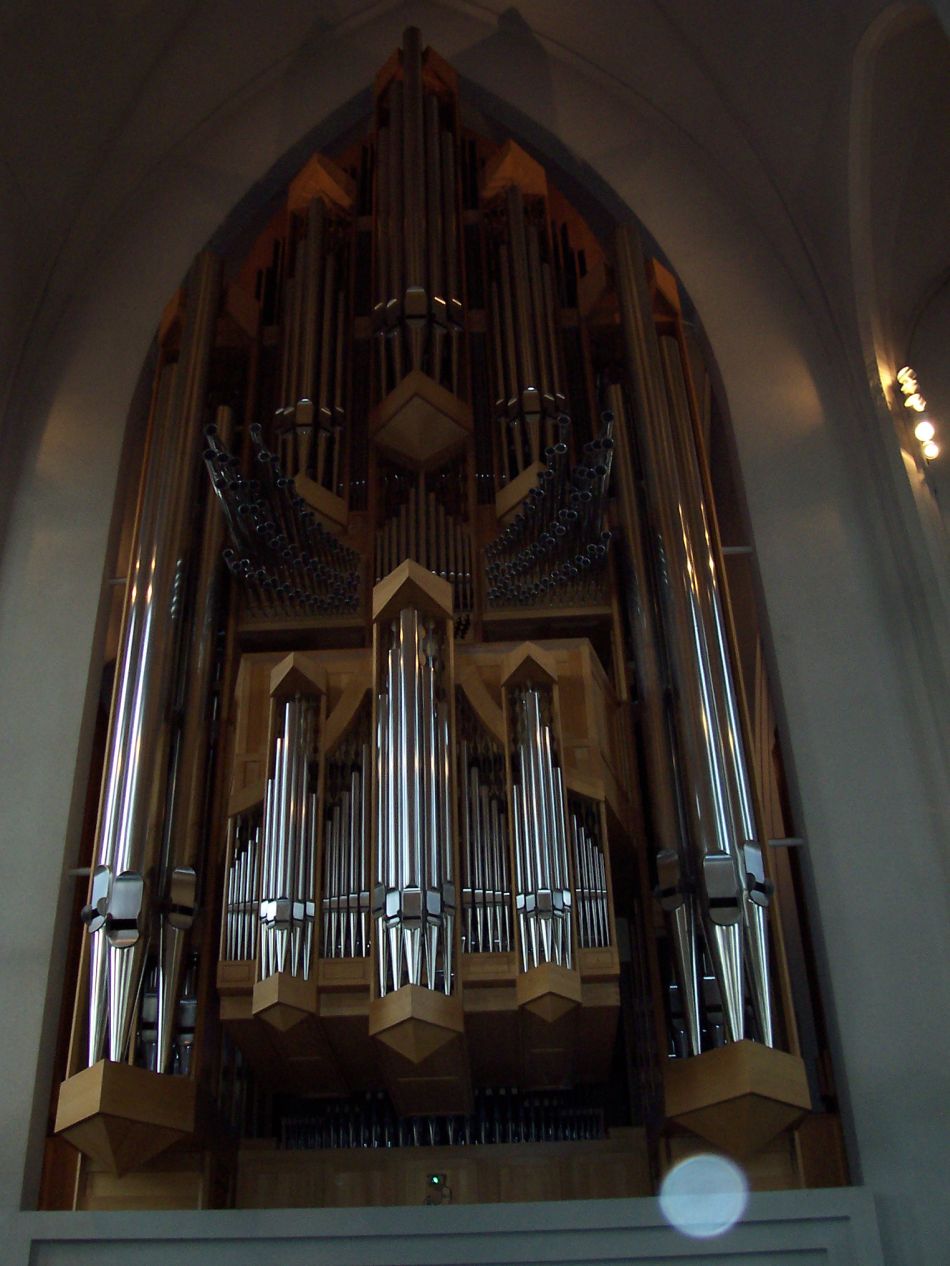 This next group of vertically-taken pictures were from a tour of the city provided again by Icelandair and included in my travel package. The most impressive location was Hallgrimskirkja, the imposing church that dominated the skyline of the central part of Reykjavik. Hallgrimskirkja is a relatively recent creation and was completed only in 1986. Apparently the construction started just after World War II finished in 1945 and then needed more than four decades to be completed. Hallgrimskirkja stands 75 meters (250 feet) tall which makes it the tallest church in the country and one of the tallest buildings of any sort. The design is most often compared to a rocket ship getting ready to blast off into space. As for the interior, it has a surprisingly soft and airy feel, with lots of bright light coming in from the tall non-stained glass windows that ring the walls. Iceland's population is almost entirely Lutheran in denomination, and like many other Protestant churches, this one had a spartan design with almost no decorations at all. The one exception was the beautiful pipe organ in the back, which stands over 15 meters tall and has more than 5000 individual pipes. Hallgrimskirkja allows visitors to ascend up to the top of the tower for outstanding views of the surrounding city, something that I did not know about at the time of this tour and wish that I had been able to see. I hoped that I would be able to do so if I came back to Iceland, but then when I did return, Hallgrimskirkja was the one place that we were unable to visit due to lack of time. Well, perhaps on a third trip then.