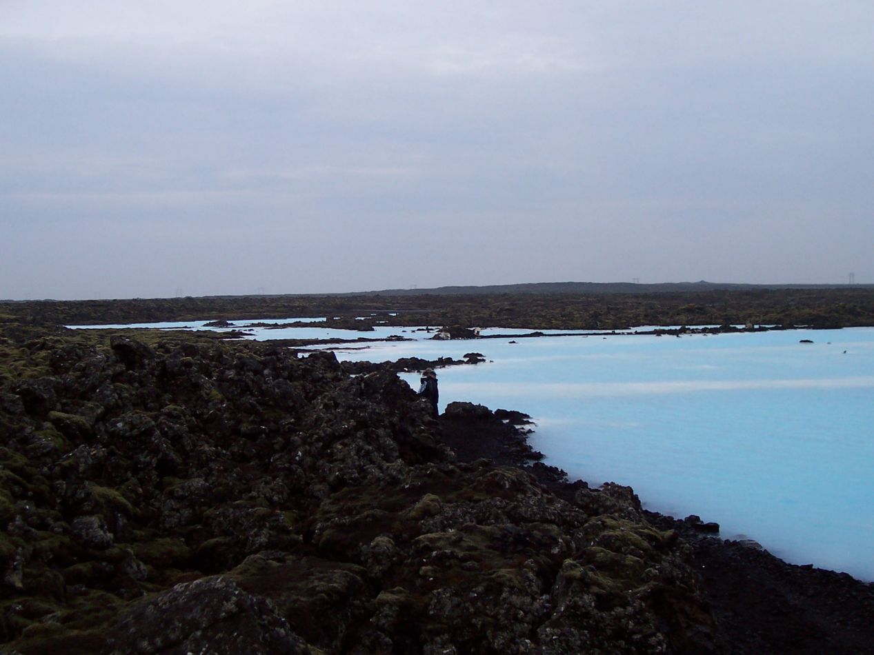 After seeing a good portion of the city, another Icelandair bus took me that evening to visit the Blue Lagoon (Bláa Lónið). This is probably the most famous tourist attraction in the whole country, a spa destination known for its outdoor lagoon with mineral-rich waters. I was surprised to find that the Blue Lagoon was located in a field of dried lava from some eruption that took place several hundred years ago. This was a very barren landscape where little in the way of plant life could grow, and it appeared at times as though the bus was driving along the surface of the moon. The water in the lagoon comes from a geothermal power plant located about a mile away - something that the tourist brochures don't talk about very much - and which was easily visible off in the distance. The water was a brilliant light blue color with milky white patches running through it from the mineral runoff in the rocks. I don't want to give the impression that I'm slamming the place too much though because bathing in the waters of Blue Lagoon was incredibly relaxing. There were very few people here in the evening on a March weekend, and the contrast between the cold weather outside and the warm waters of the lagoon was quite soothing. Maybe the Scandinavians and their obsession with saunas and hot springs are on to something after all. It even began to rain lightly at one point and it didn't seem to bother anyone very much. With the steam rising up from the heat of the nighttime waters, the whole experience had a bit of an otherworldly feel to it. For anyone who wants to visit the Blue Lagoon, I recommend headed there at night when it's much less crowded as compared to during the day.