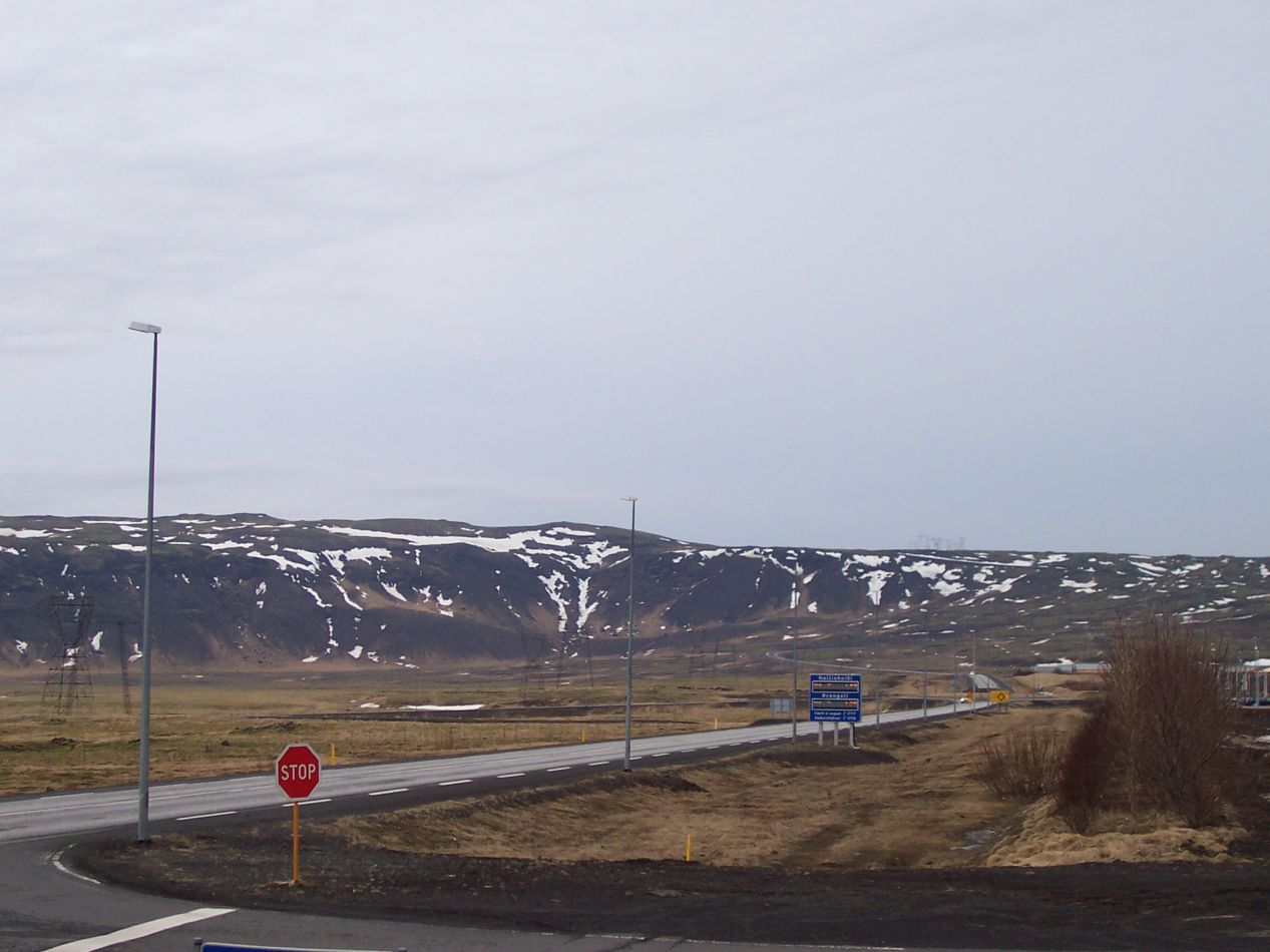 Our first stop on the bus tour was a small village named Hveragerði, pictured above with a total population of just over 2000 people. The reason why the tour bus stopped was to showcase the greenhouses in the town; Hveragerði is known for having a bunch of them and the tour took our group to see an example. This is one of many places in Iceland with active hot springs, used here to provide heat for the local greenhouses. For some reason I didn't take any pictures of the greenhouse tour so you'll have to use your imagination of the plants on display. I was more struck by the natural scenery that dwarfed this little town on all sides. Snow-capped hills reared up behind it to the north, while another series of hills made a barrier that had to be surmounted to travel west towards Reykjavik. Our tour bus had laboriously traversed those hills to reach this place earlier. Meanwhile, to the east and to the south there was a flat plain that contained... well, nothing. It was flat ground covered by tough grass and the occasional isolated farmstead as far as the eye could see. I felt like I was on the Great Plains of the United States, only with snowy mountains and volcanoes around to spice things up a bit.