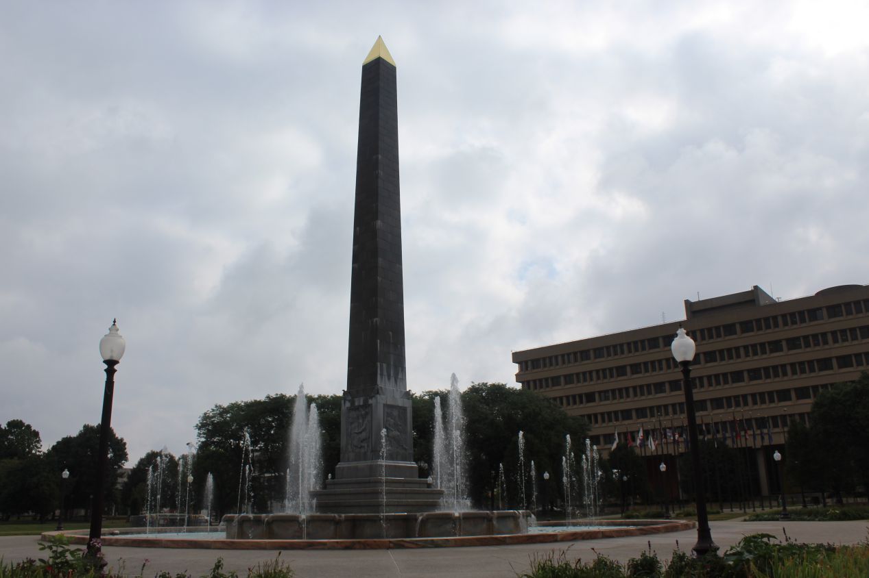 The aforementioned monument stands in a circle in the heart of the city and has become the iconic symbol of Indianapolis. Construction on the Soldiers and Sailors Monument took about a decade to complete before finishing in 1902. The 285 foot (85 meter) neoclassical pillar was dedicated to Indiana's veterans of the Civil War, and then later tributes to other 19th century wars up to and including the Spanish-American War were added to the base of the monument. This was the first monument to be dedicated to the common soldier in the United States, and it helped inspire dozens of similar tributes in the following years around the country. The whole base of the monument is decorated with different sculptures, most of them depicting Union soldiers in Civil War-era attire. There are also two large fountains on the east and west sides of the monument that add to the general atmosphere. There were still relatively few people out touring the area, and I took advantage of the lack of crowds to walk in a circle around the monument and see it from each side.
